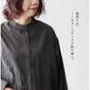 コットン100%の軽やかなシャツ生地。さらっと滑らかな触り心地でふわっと柔らかな風合いです。伸縮性はなく光にかざすと若干透け感があります。