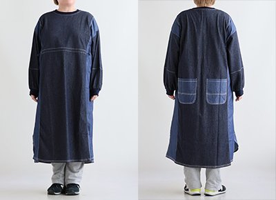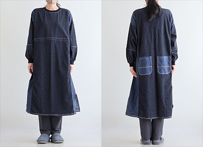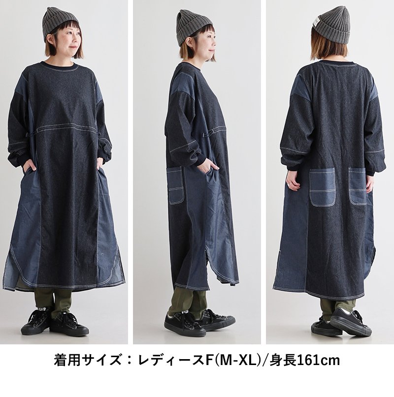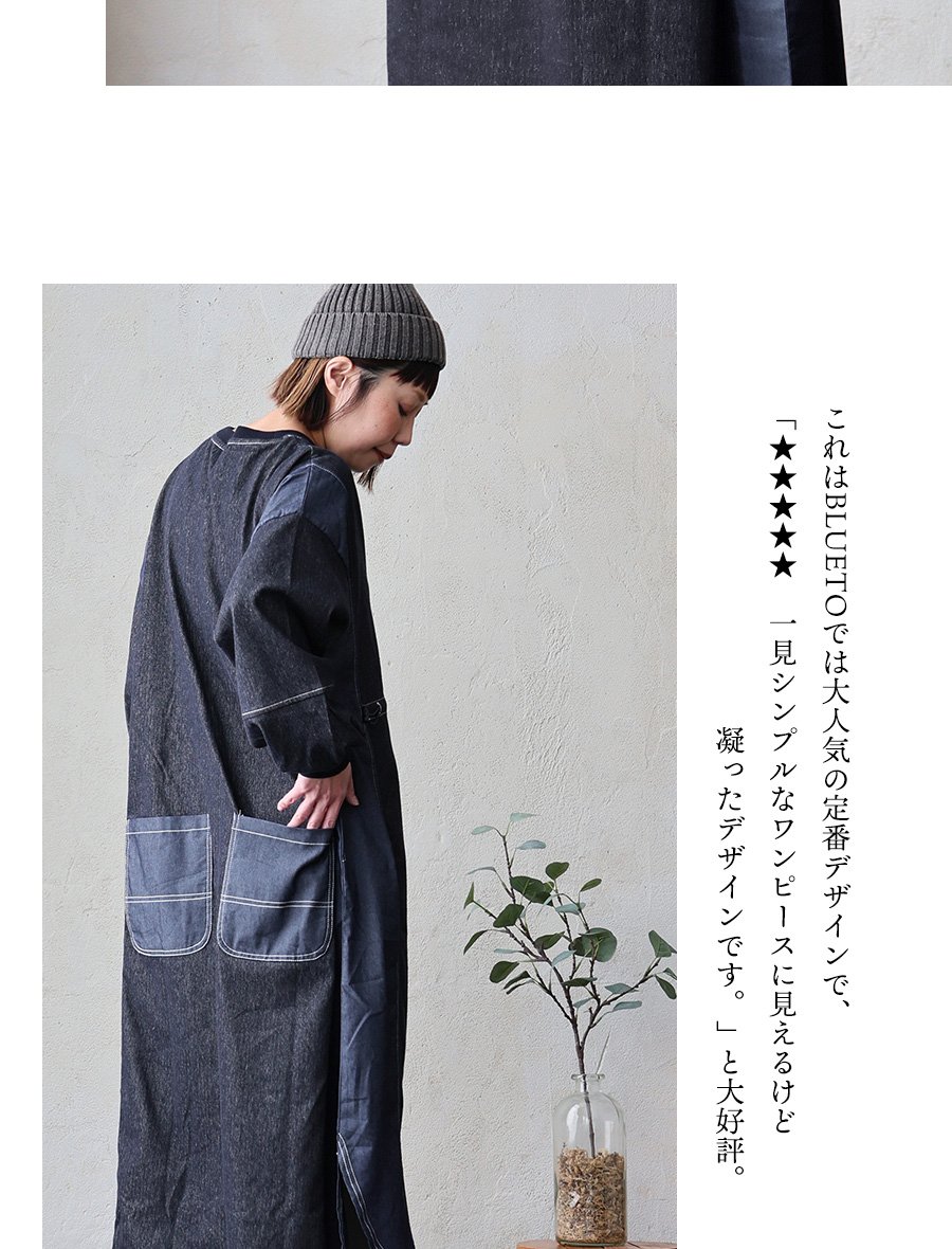 見せたい、「見たことない」後ろ姿。 ワンピース ワンピ 長袖 レディース 着痩せ ストレッチ カットデニム 布帛 切り替え 軽い 柔らか クルーネック 袖リブ 配色ステッチ ポケット 伸縮性 ゆったり 体型カバー 春 パティ BLUETO ブルート