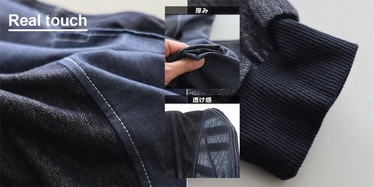本体:程よく厚みがあり、ふわっとした、とても柔らかく気持ち良い伸びを持つカットデニム地。
