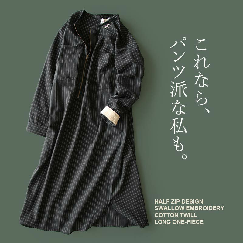 他の画像を見る これなら、パンツ派な私も。 ワンピース ロング丈 長袖 ひざ下 ハーフジップ ミリタリー M65風 ビッグポケット 薄手 コットンツイル ストライプ 配色 ワンポイント ツバメ 刺繍 レディース メンズライク SAIL セイル 2~3日でお届け 販売価格 ¥ 5,390 税込 在庫切れ カートに入れる お気に入りに登録する