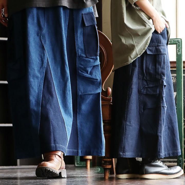 生地も加工もデザインも、「リアル」だからカッコいい。 デニム スカート マキシ丈スカート マキシスカート フレア Aライン ロングスカート 無地 デニムスカート カーゴ ポケット サイドベルト ウエストゴム レディース 大きいサイズ ゆったり かっこいい 大人 PATY パティ BLUETO ブルート