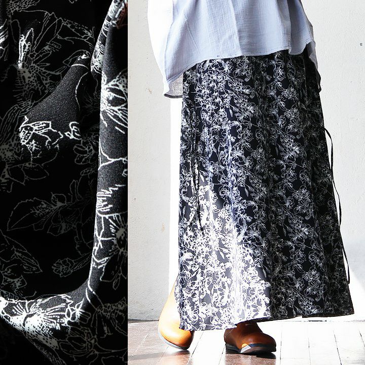 5. スカート フレアスカート ギャザー ペプラム レディース 総柄 薄手 裏地付き ポリエステル100% 軽い 涼しい ウエストゴム 体型カバー カジュアル パティ le colis ルコリ