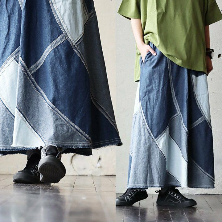 5. スカート デニムスカート フレア マキシ丈 レディース リメイク風 6オンスデニム 綿100% コットン 軽い 薄手 ウエストゴム ゆったり 体型カバー 大きいサイズ カジュアル 夏 夏服 パティ