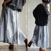 【モデルコメント】ウエストで穿きました。ウエストゴムは適度なフィット感です。中は、スウェットパンツも合わせやすそうなゆとりがありました。 【客観的コメント】足首が完全に隠れる丈の長さです。ゆとりはありながらも、良いシルエットで穿けていましたね。