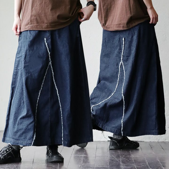 強いデザイン性から生まれる、存在感と細見せ力。 スカート マキシ丈スカート デニムマキシ フレア Aライン 着痩せ 脚長 ロングスカート リメイク 変形 ポケット マキシスカート レディース ゆったり かっこいい フレアスカート 大きいサイズ 大人 カジュアル アメカジ BLUETO ブルート