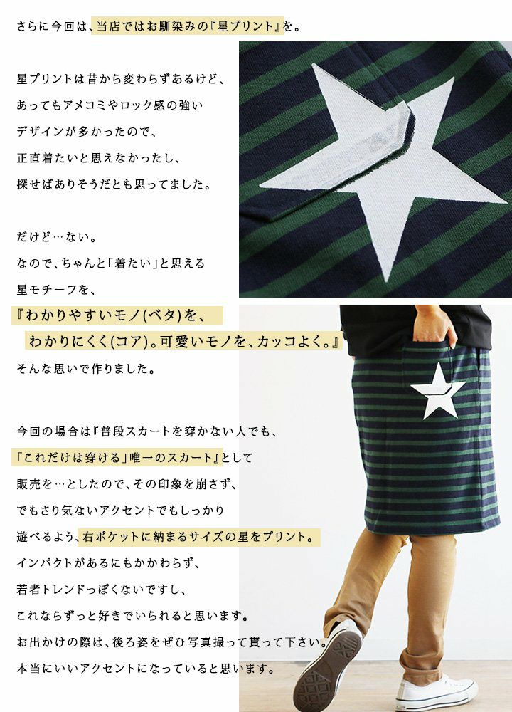 他の画像を見る 普段スカートを穿かない人でも、「これだけは穿ける」唯一のスカート。 (セイル) SAIL ひざ丈スカート ウエストゴム 紐 ボーダー柄 星 スター プリント バスク 綿100% 販売価格 ¥ 4,950 税込 在庫切れ カートに入れる お気に入りに登録する