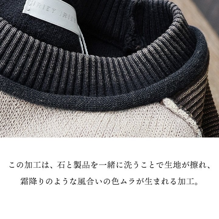 程よくフィットし安心感のある、ヴィンテージリブニット。 ニット リブニット 長袖 レディース ハイネック 綿100 コットン ストーンウォッシュ加工 褪せ色 伸縮性 重ね着 インナー 袖長め 無地 カジュアル 秋 冬 パティ