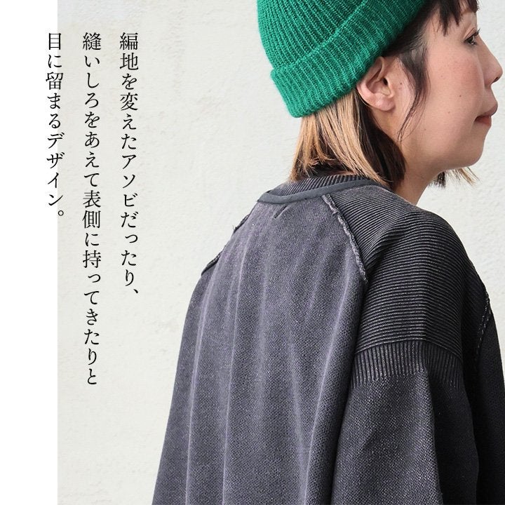 スウェット感覚で着られる、不思議な着心地。 【訳あり】ニット 長袖 レディース クルーネック スウェットライク コットン ポリエステル 配色 パイピング 無地 伸縮性 袖リブ ゆったり カジュアル 秋 冬 パティ