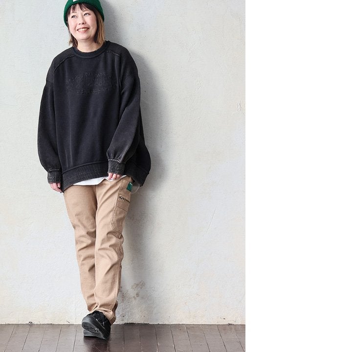 大人が着たくなる「最大限のアソビ」。 スウェット 長袖 レディース クルーネック ロゴ刺繍 ロックステッチ 綿100 コットン ミニ裏毛 薄手 軽い 伸縮性 大きいサイズ 体型カバー カジュアル パティ KAKELA&TRANQUIL カケラ&トランクイル