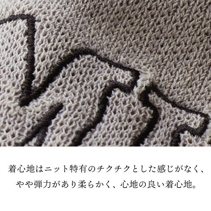 「良いとこどり」なニット。 ニット 長袖 レディース クルーネック 配色ロゴ ジャガード コットン ポリエステル スウェットライク 伸縮性 厚手 ゆったり 大きいサイズ 着痩せ すっきり 体型カバー カジュアル秋 冬 パティ en haut アンオー