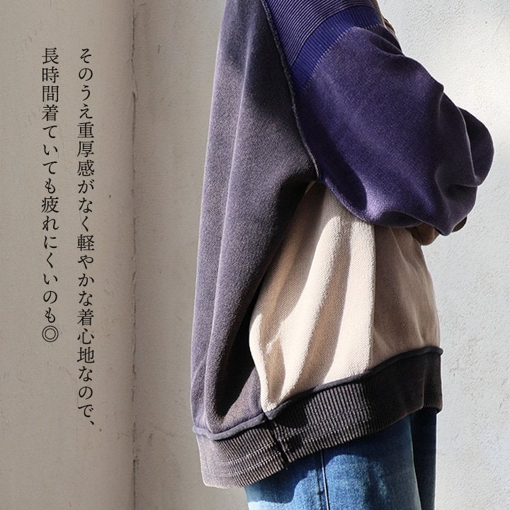 「着たときも、着ない時も考えられている」、カジュアル過ぎないドッキングパーカー。 パーカー ニットデニム 切替 レディース プルパーカー プルオーバー ボリュームネック ロング 着痩せ ワイド 暖かい ポケット ラグラン スウェットデニム クレイジーニット 切り替え 首 袖 裾 リブ 大きいサイズ お尻 体型 カバー カジュアル パティ TOneontoNE トーン