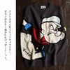 懐かしいキャラクターでインパクト大! ニット セーター プルオーバー 長袖 メンズ レディース ポパイ ジャガード アクリル100% 洗濯可 ゆったり 大きいサイズ 暖かい 秋 冬 カジュアル PATY