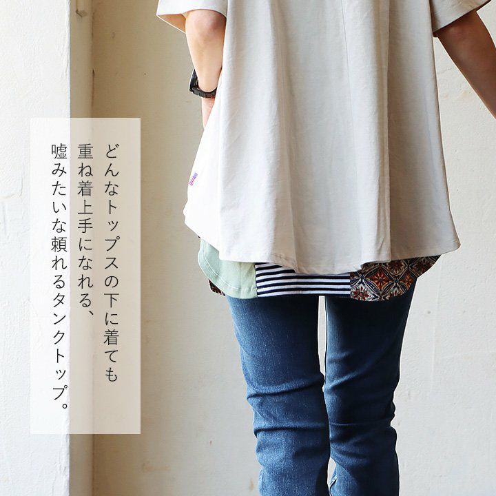他の画像を見る いつものタンク「コレ」に替えるだけで、重ね着上手に。 【メール便50】 タンクトップ ロング レディース 重ね着 胸元 お尻 カバー 綿100% コットン ロング丈 切り替え 柄 ワイド ストラップ 吸水 薄手 軽い 大人 すっきり 安心 胸が ブラ紐 隠し 見えない パティ 2~3日でお届け POINT5倍 販売価格 ¥ 2,750 税込 カートに入れる お気に入りに登録する