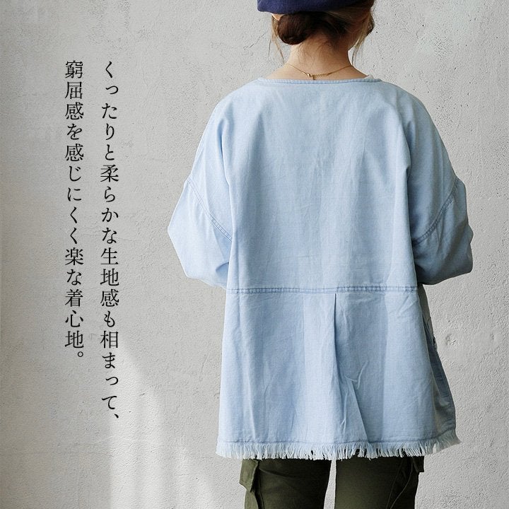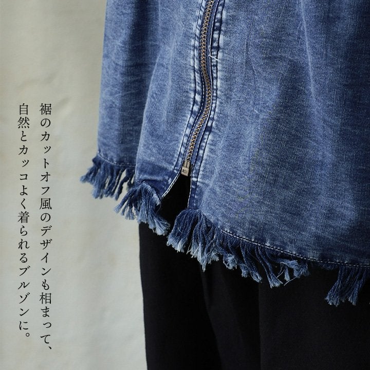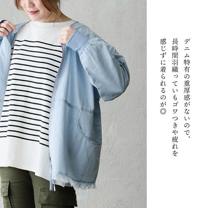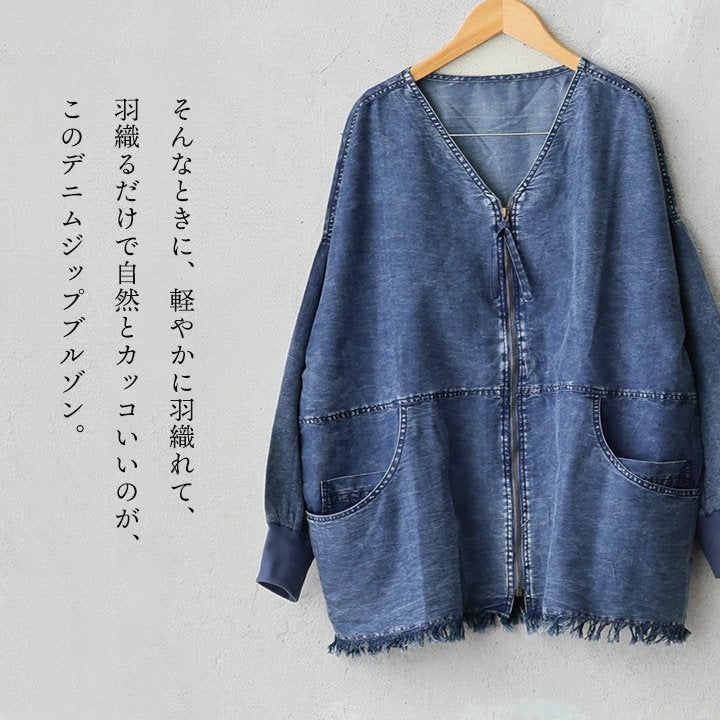 他の画像を見る ラフなのに、ちゃんと大人。迷わず決まるデニムブルゾン。 ブルゾン 長袖 レディース クルーネック デニム コットン ケミカル加工 ヴィンテージ 軽い ゆったり 大きいサイズ 体型カバー カジュアル 春 パティ 2~3日でお届け 販売価格 ¥ 7,590 税込 カートに入れる お気に入りに登録する