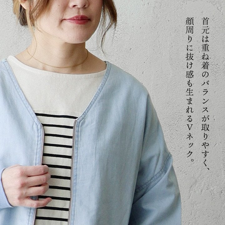 他の画像を見る 軽やかに羽織れるワーク由来のヒッコリー。 CUBE SUGAR キューブシュガー ジャケット デニムジャケット 長袖 レディース ノーカラー ヒッコリー ストライプ デニム 軽い 薄手 柔らか 大きいサイズ 体型カバー カジュアル パティ 2~3日でお届け 販売価格 ¥ 10,780 税込 カートに入れる お気に入りに登録する