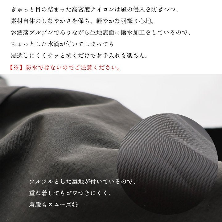他の画像を見る ¨お洒落¨の延長で嬉しい機能があると、いろいろと安心。 ブルゾン 長袖 フード付き スタンドネック レディース 無地 高密度 ナイロン 裏地付き 袖ゴム 軽い 撥水 お手入れ 簡単 ゆったり 大きいサイズ 体型カバー カジュアル パティ 2~3日でお届け POINT5倍 販売価格 ¥ 7,590 税込 カートに入れる お気に入りに登録する