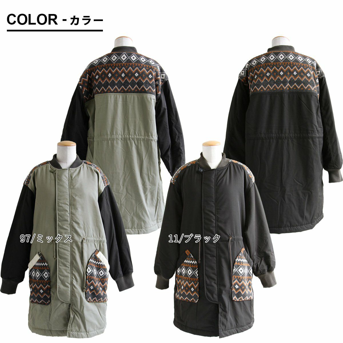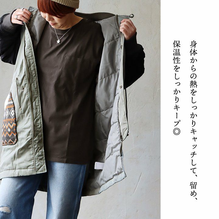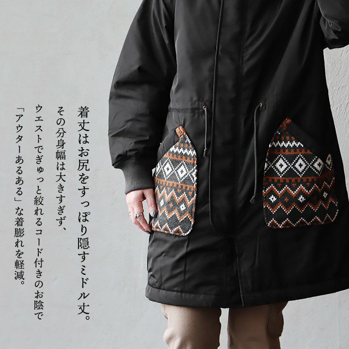 他の画像を見る 私のとっておき「ミリタリー」。 ミリタリーコート ミドル丈 レディース お尻隠れる 異素材切り替え 幾何学柄 ジャガード ニット 中綿 キルティング 裏地付き 暖かい 保温性 防寒 ゆったり 体型カバー カジュアル ミリタリー 秋 冬 パティ CUBE SUGAR キューブシュガー 2~3日でお届け 販売価格 ¥ 17,600 税込 在庫切れ カートに入れる お気に入りに登録する