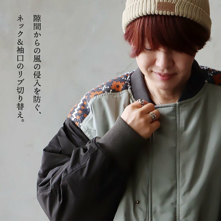 他の画像を見る わたし好みの無骨さと、個性派なデザイン。 MA-1 ジャケット 長袖 レディース リメイク 異素材切り替え ニット ナイロン 袖リブ 中綿 キルティング 暖かい 軽い ゆったり 大きいサイズ カジュアル ミリタリー ヴィンテージ 秋 冬 パティ en haut アンオー 2~3日でお届け 販売価格 ¥ 14,080 税込 カートに入れる お気に入りに登録する