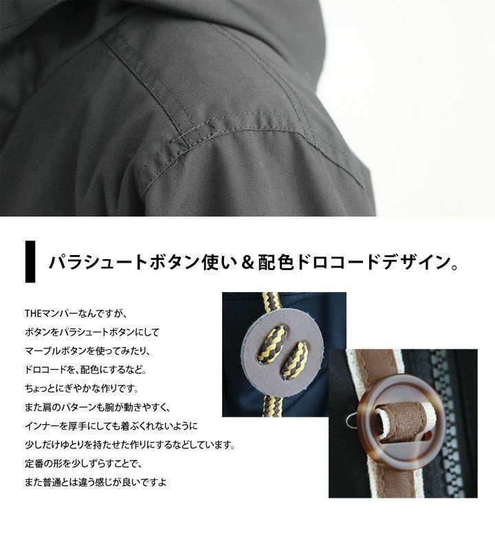 他の画像を見る 普通のマウンテンパーカーのようで違う、「細かな拘り」が◎ マウンテンパーカー ハイネックデザイン 高密度 TCウェザークロス パラシュートボタン 裏地付き 販売価格 ¥ 6,490 税込 在庫切れ 詳細を見る お気に入りに登録する
