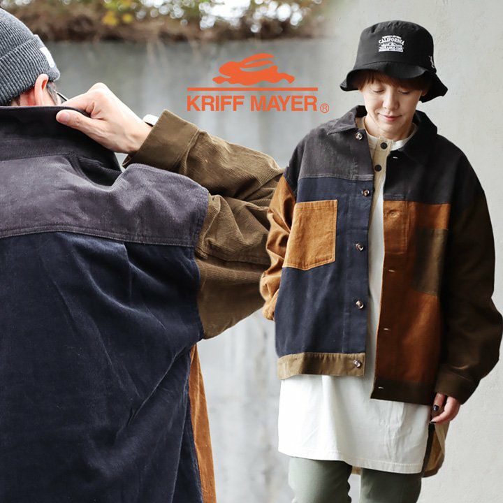 サッと羽織って重ね着を盛り上げる、「コーデュロイ」。 KRIFF MAYER クリフメイヤー ジャケット CPOジャケット 長袖 メンズ レディース クレイジー 綿100 コットン コーデュロイ 胸ポケット 配色 重ね着 ゆったり 大きいサイズ カジュアル 秋 冬 パティ