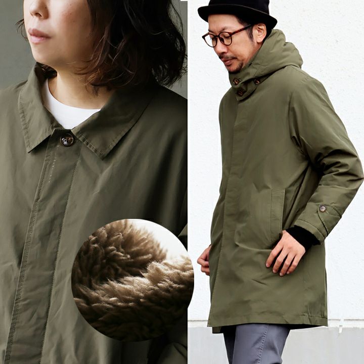 4. 暖かい 裏ボア コート ミドル丈 冬アウター すっきり 着痩せ メンズ レディース 60/40クロス 軽い 撥水 防風 袖リブ 中綿 ICカードポケット 2WAY フード 取外し可 刺繍 通勤 旅行 スポーツ観戦 Mr.Lumberjack