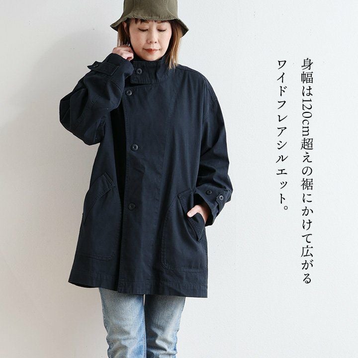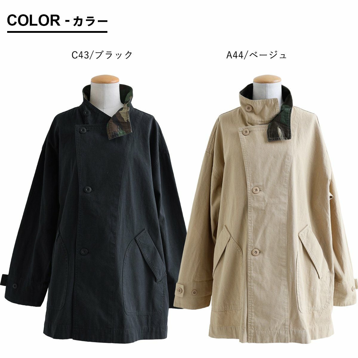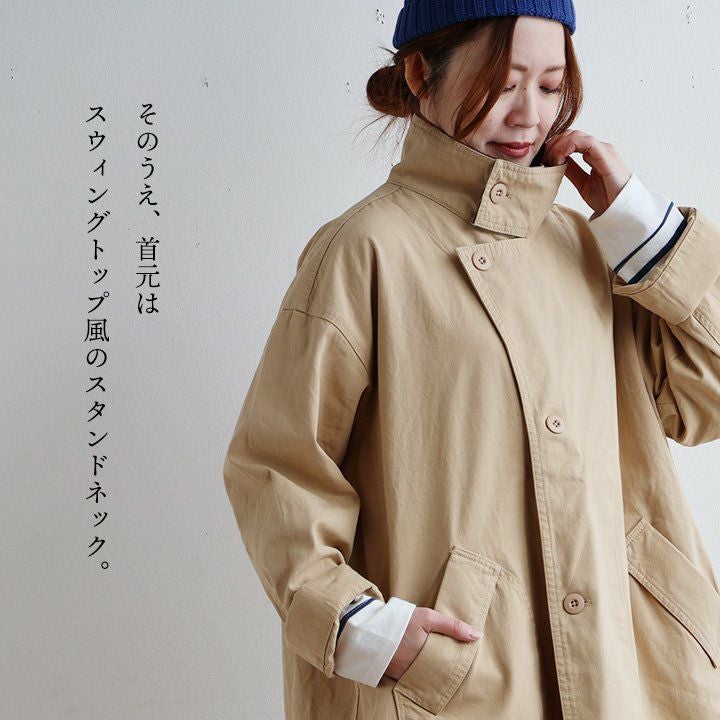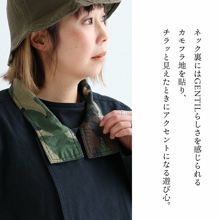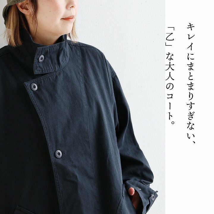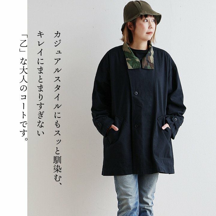 キレイにまとまりすぎない、「乙」な大人のコート。 コート レディース スタンドネック 無地 綿100 コットン ツイル しっかり生地 軽い 異素材切り替え カモフラ 大きいサイズ 体型カバー カジュアル 春 パティ GENTIL ジャンティ