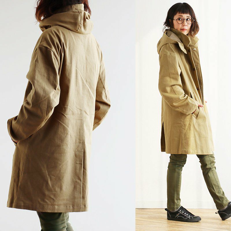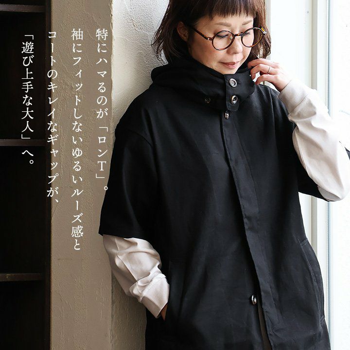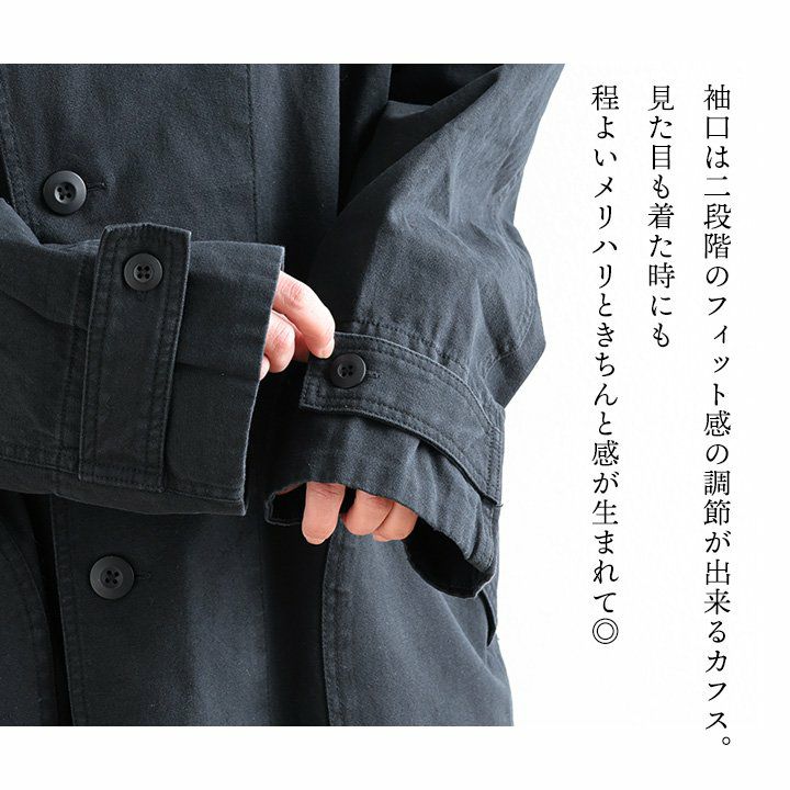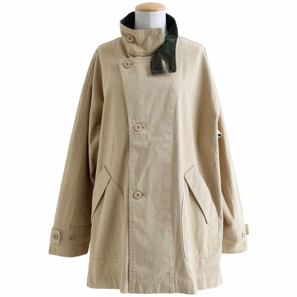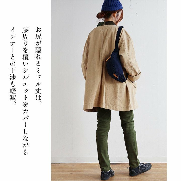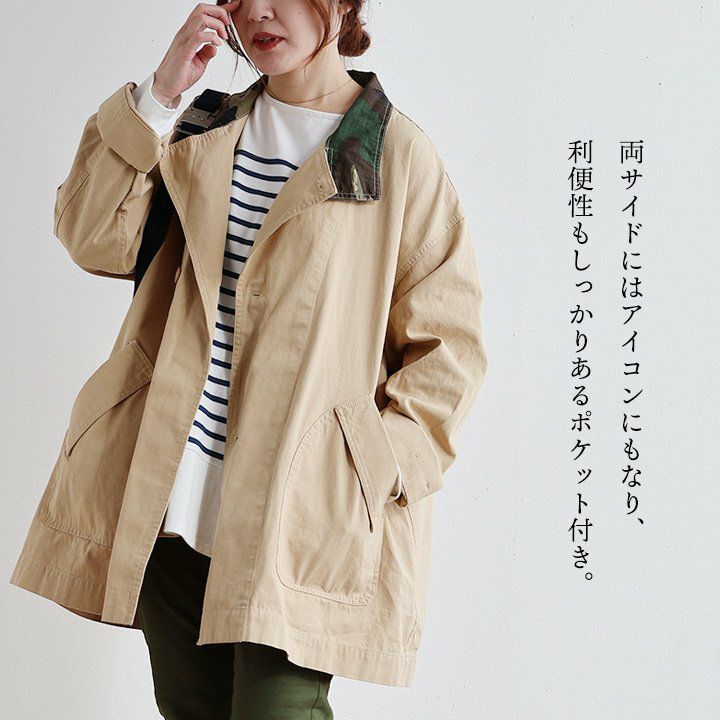 キレイにまとまりすぎない、「乙」な大人のコート。 コート レディース スタンドネック 無地 綿100 コットン ツイル しっかり生地 軽い 異素材切り替え カモフラ 大きいサイズ 体型カバー カジュアル 春 パティ GENTIL ジャンティ