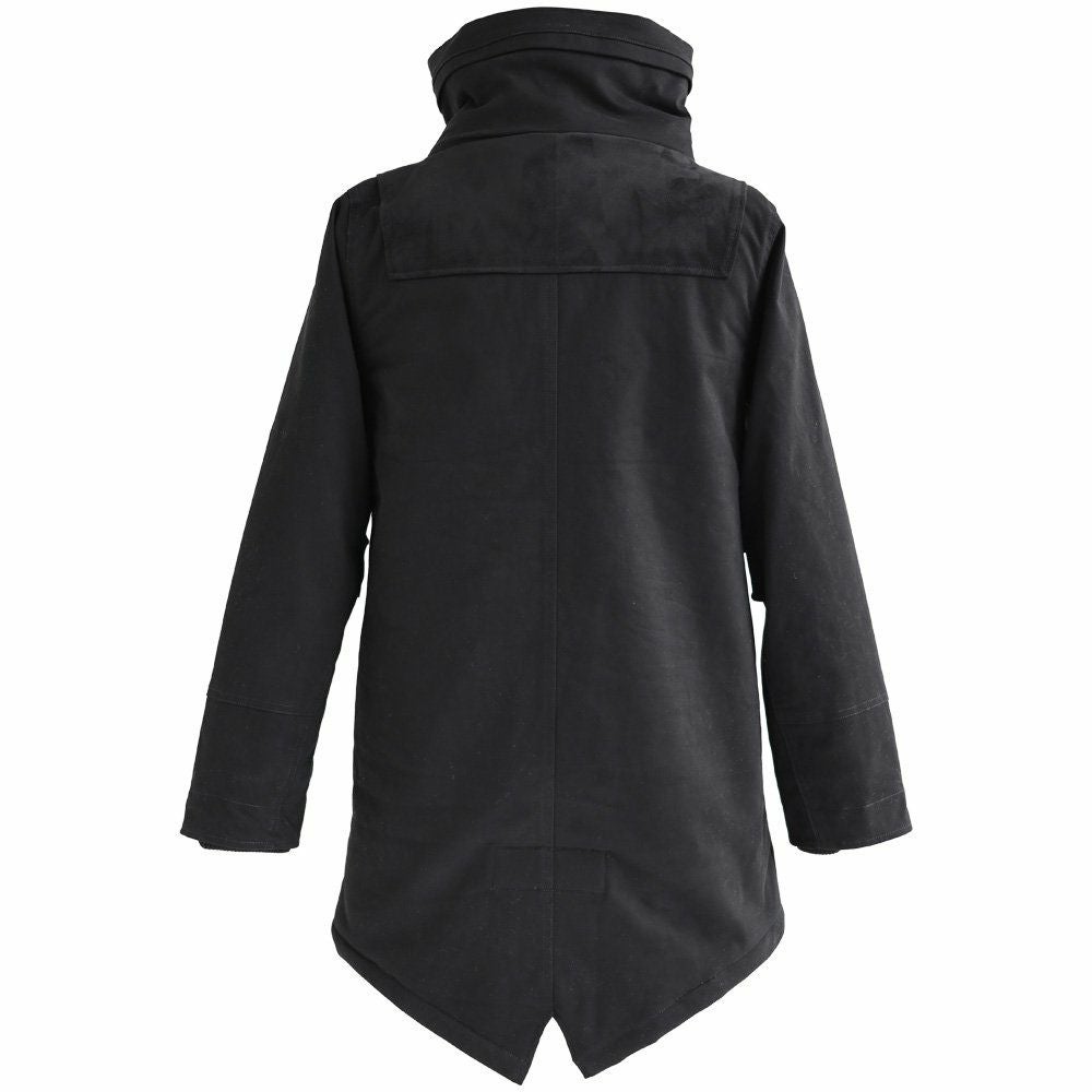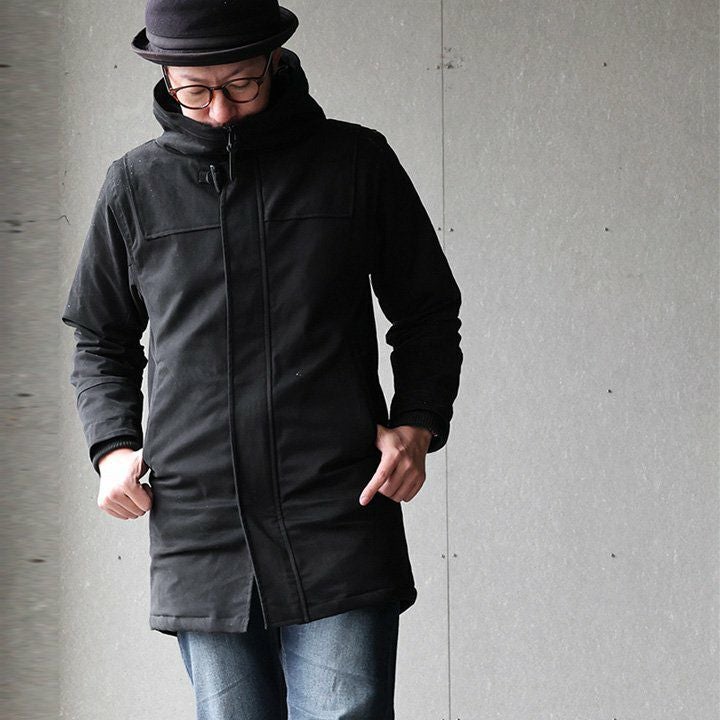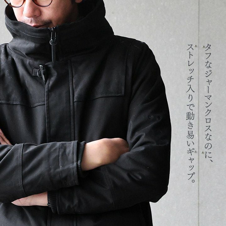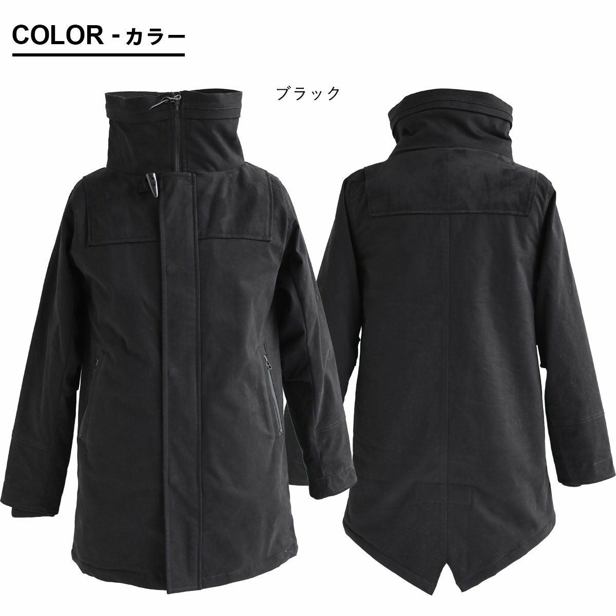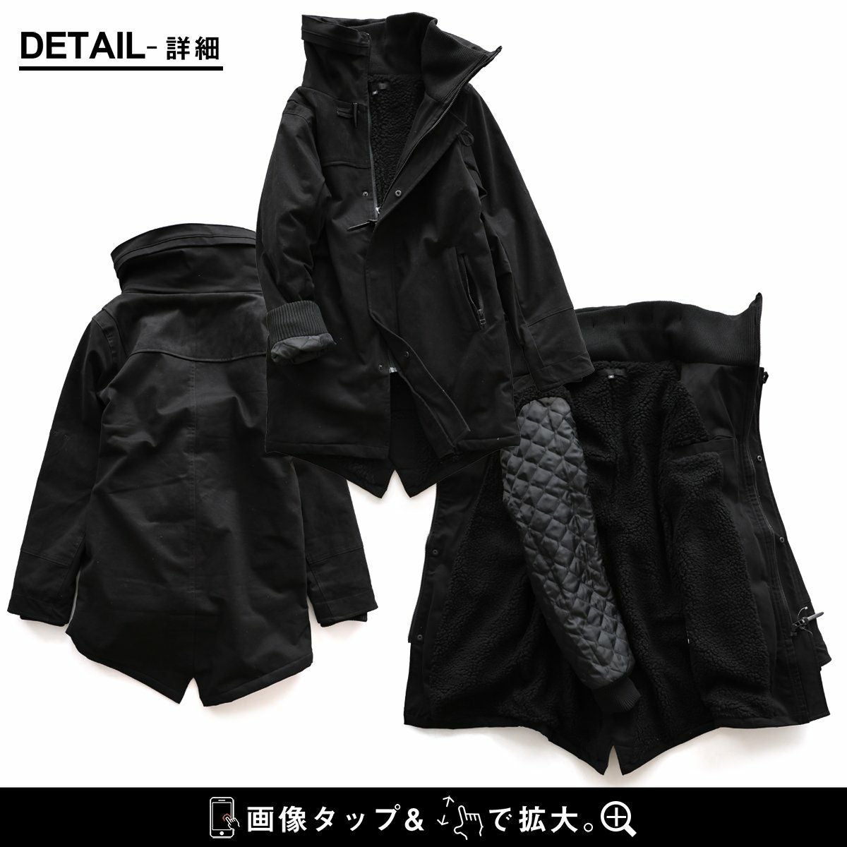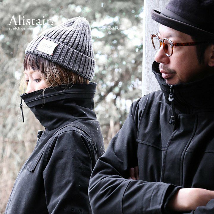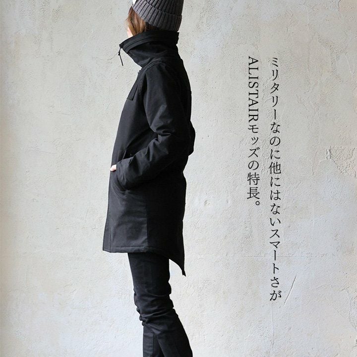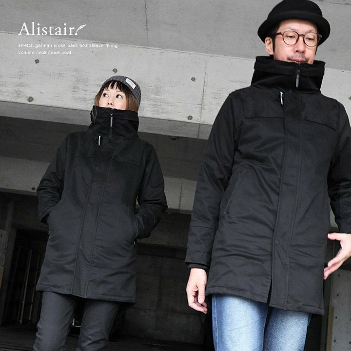 「体感温度+4」でマフラー要らずのストレッチコート。― ALL BLACK. モッズコート ストレッチ 暖かい 裏地ボア 中綿 メンズ レディース スリム ミリタリー コート 冬 アウター モッズ ロング 着痩せ ハイネック 小顔 袖リブ ダブルジップ ジップポケット 防寒 黒 ブラック かっこいい すっきり 細見え 大きいサイズ パティ ALISTAIR アリステア