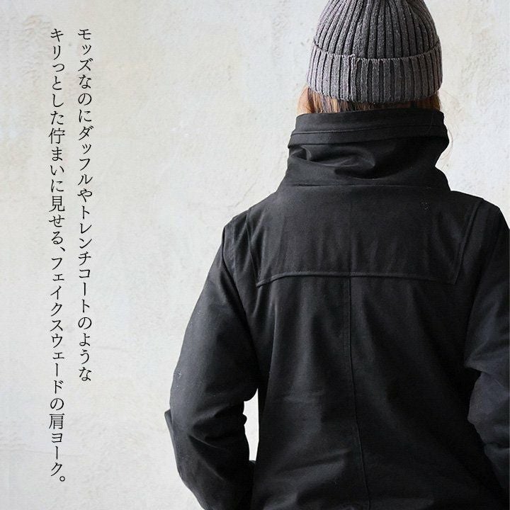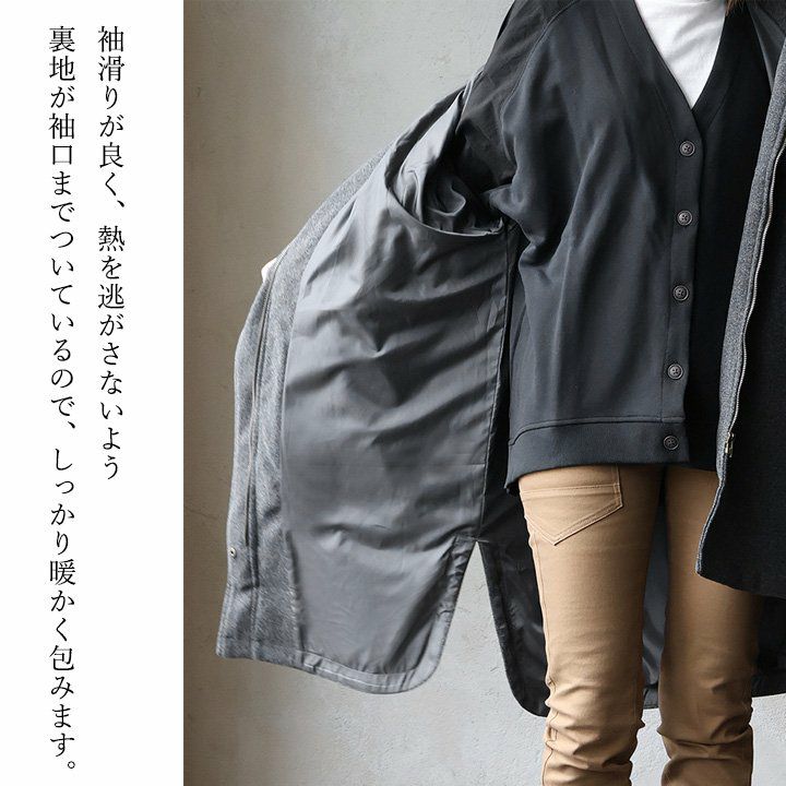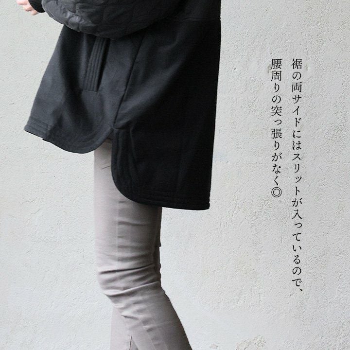 レトロな見た目に隠した、「暖かさ」と「動き易さ」。 コート レディース 冬 着痩せ メルトンコート 裏地付き アウター キルティング 切り替え 落ち感 柔らかい 軽い 防寒 暖かい 袖リブ ミドル丈 ハイネック ドロップショルダー ゆったり 大きいサイズ パティ SAIL セイル