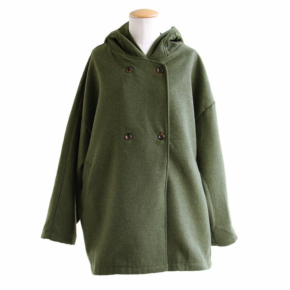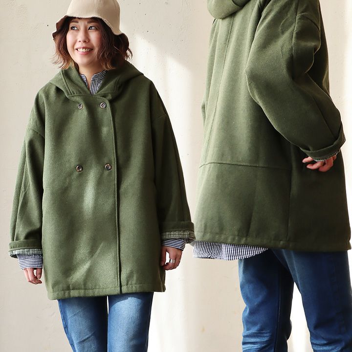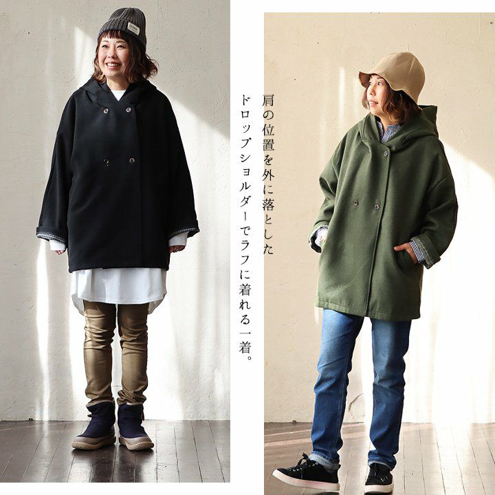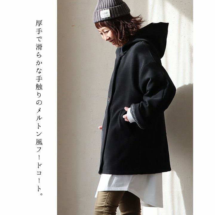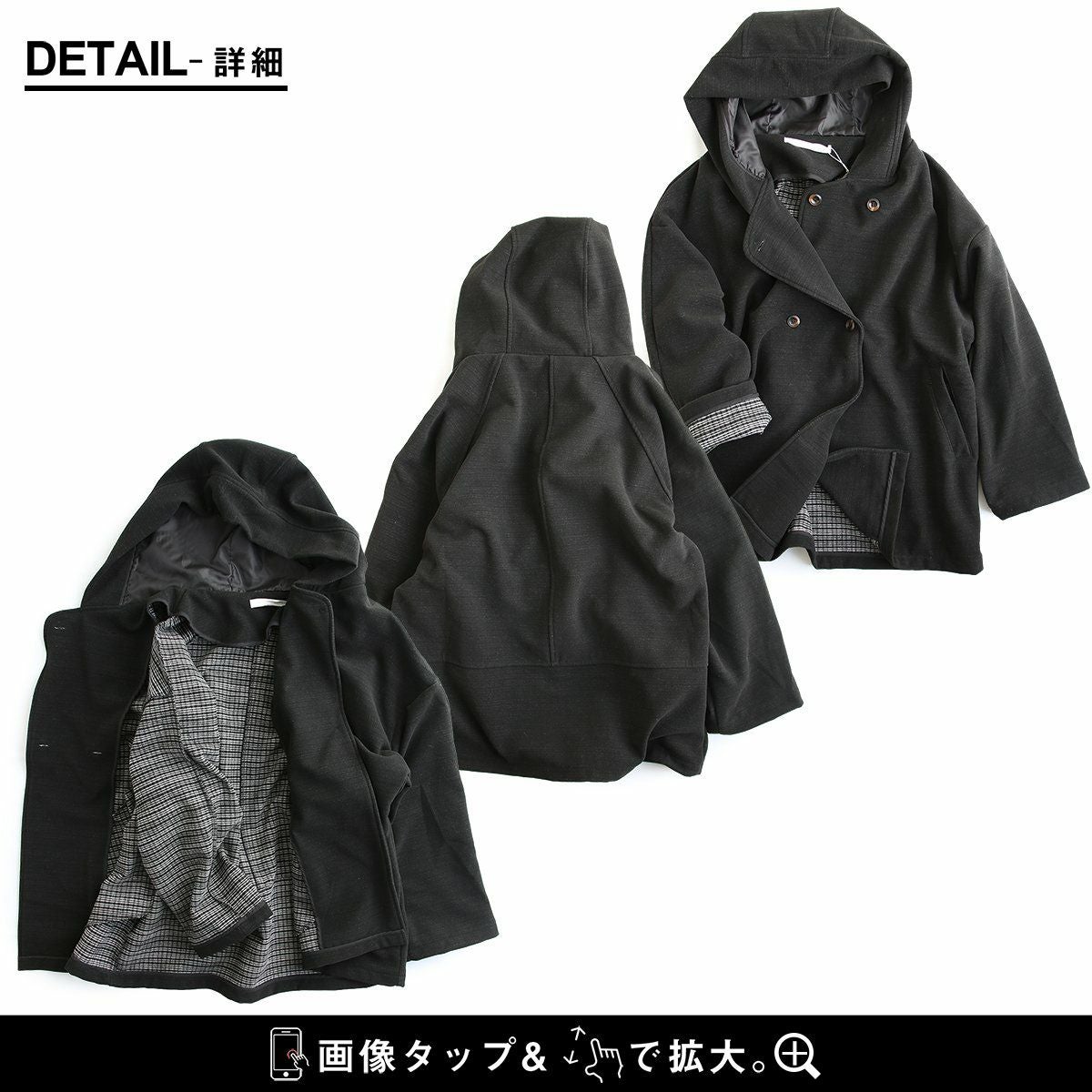「王道クラシック」って、やっぱり秋冬らしくて良い。 コート アウター 長袖 レディース メルトン風 裏地チェック柄 お尻隠れる 体型カバー フード付き 暖かい 防寒 大きいサイズ カジュアル PATY