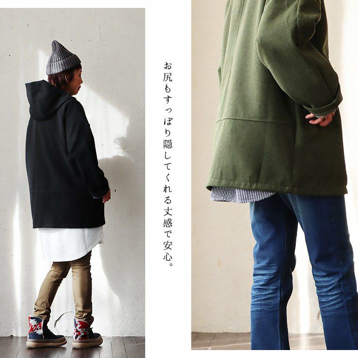 雨にも風にも寒さにも強い。丈夫で軽い「裏ボア」アノラック風コート。 暖かい 裏ボア コート メンズ レディース アノラック風 斜めジップ ダブルジップアップ ハイネック フード ミドル丈 撥水 防風 軽い 60/40クロス ジップポケット 内ポケット 袖リブ ラグラン アウター おしゃれ 自転車 ミリタリー カジュアル 冬 パティ OAR’S オールズ