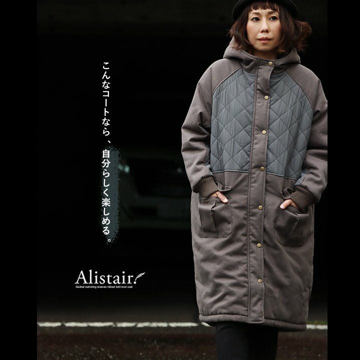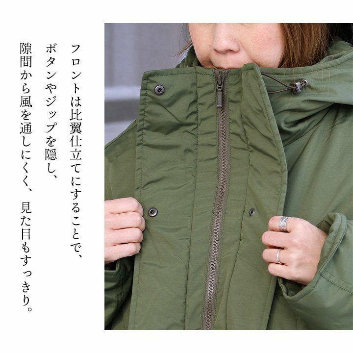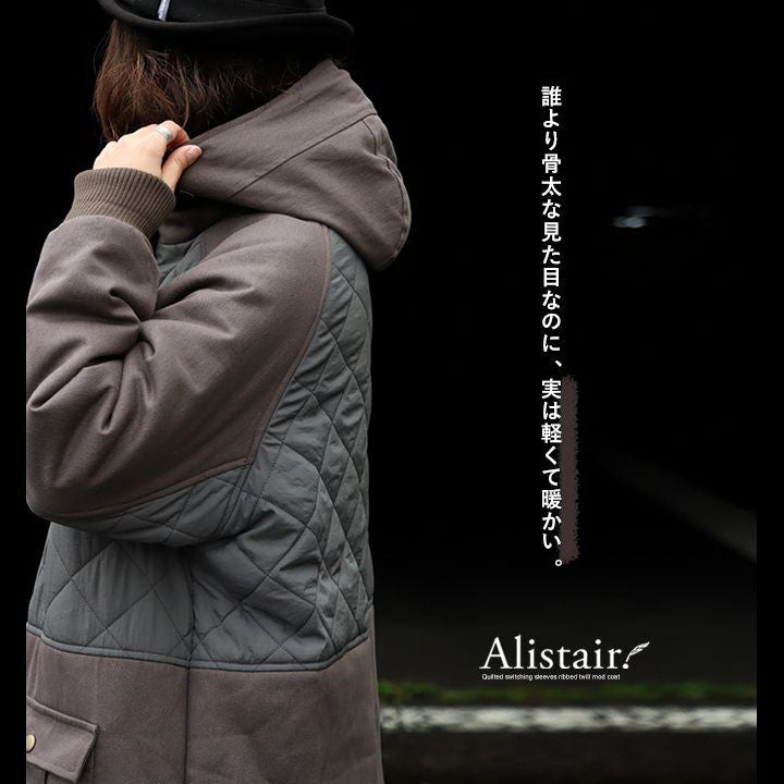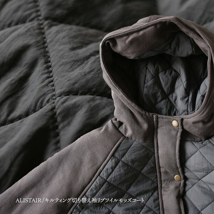 誰より骨太な見た目なのに、実は軽くて暖かい。 モッズコート コート レディース 中綿 キルティング ツイル 切り替え 袖リブ ワイド ゆったり お尻 隠れる 軽い 暖かい 冬 ラグラン ミリタリー アウター ALISTAIR アリステア