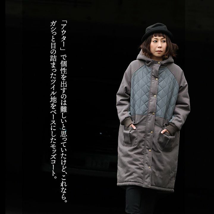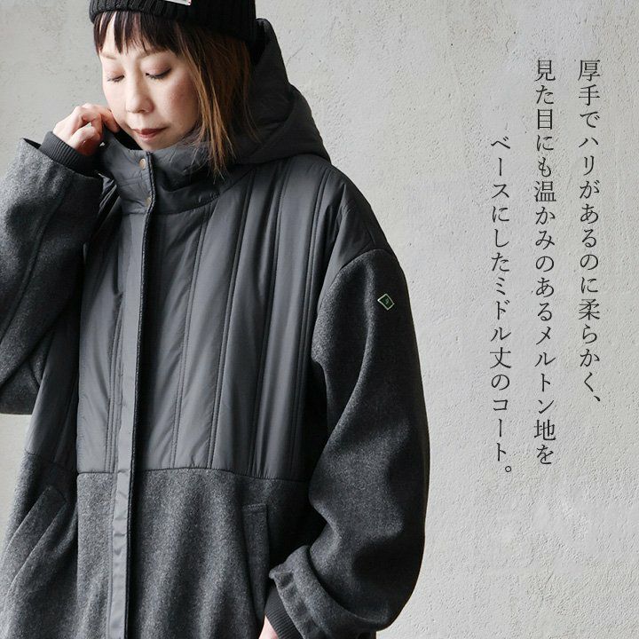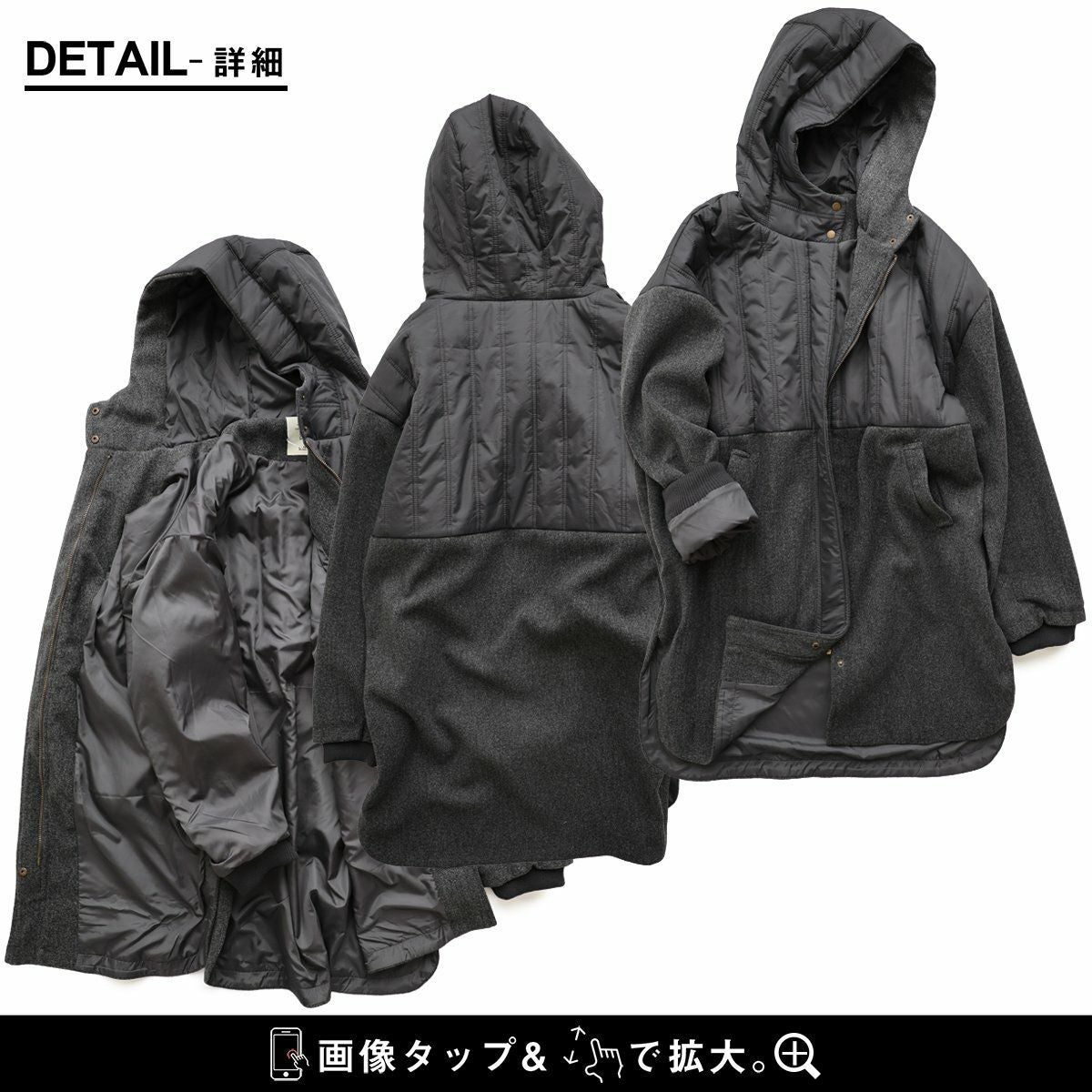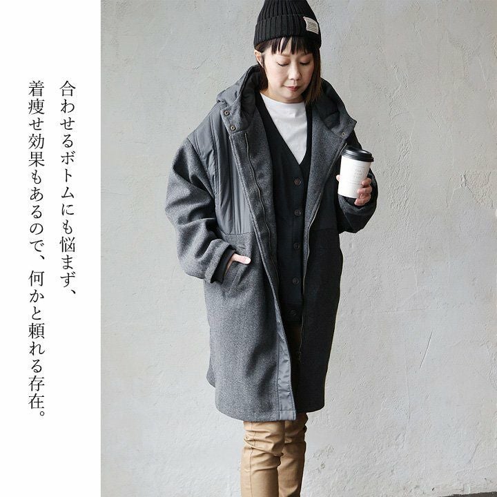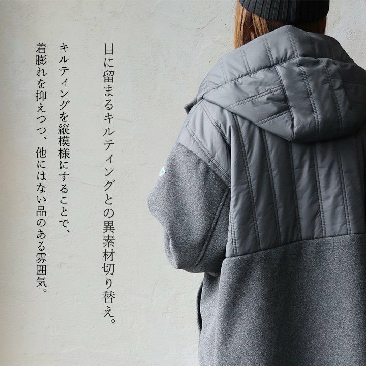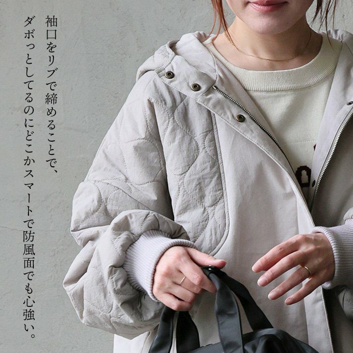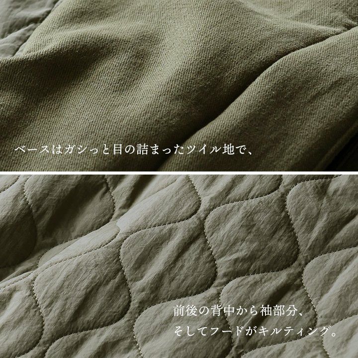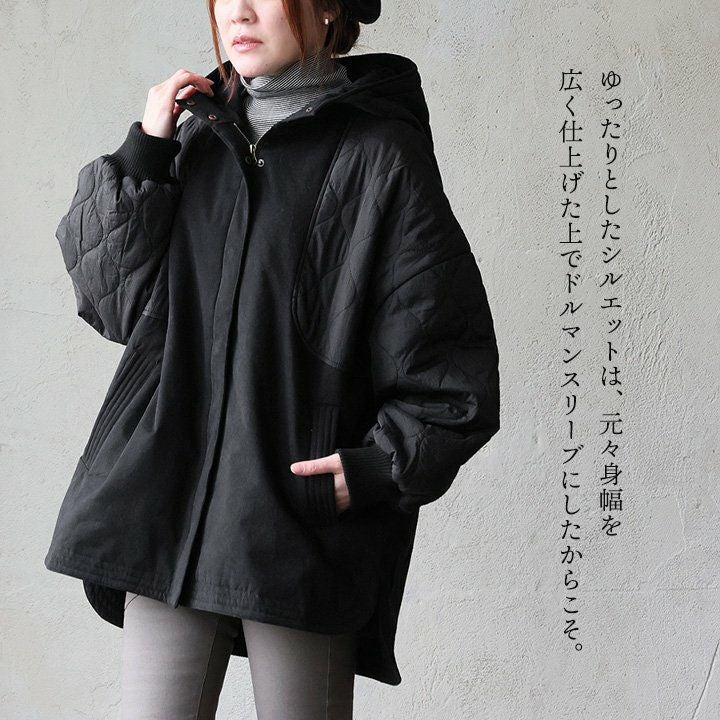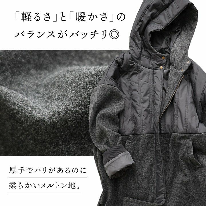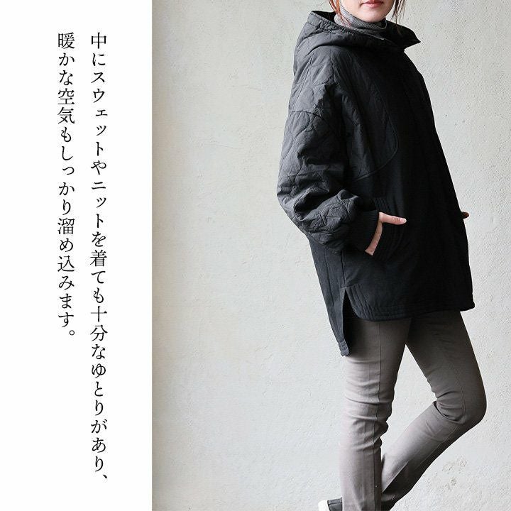 「軽くて暖かい」だけなら、周りと一緒だから。 コート 中綿 レディース フードコート キルティング ツイル 異素材切り替え 重ね着風 ドルマン 軽い 暖かい ゆったり 大きいサイズ 秋 冬 カジュアル パティ