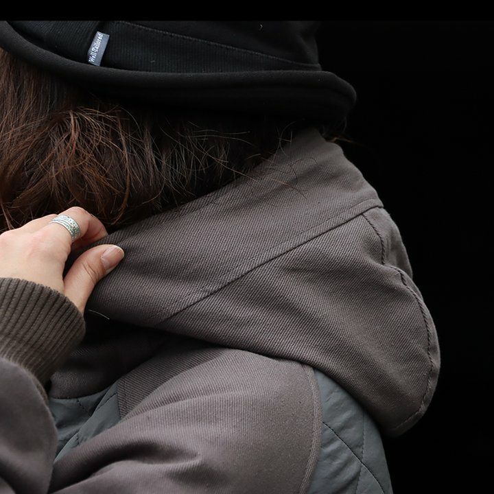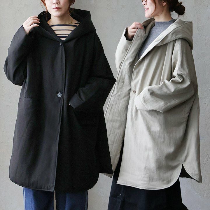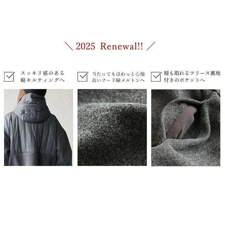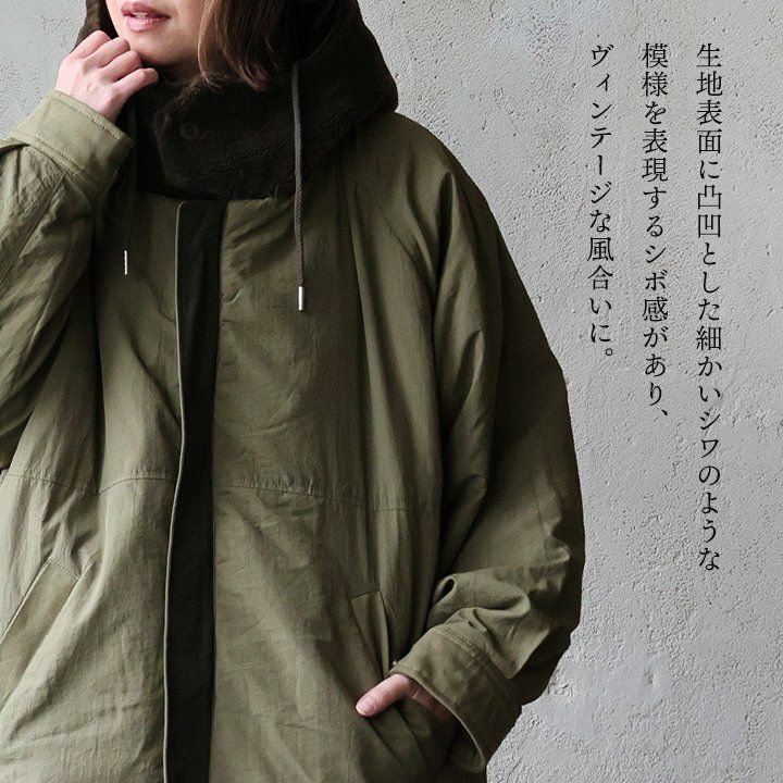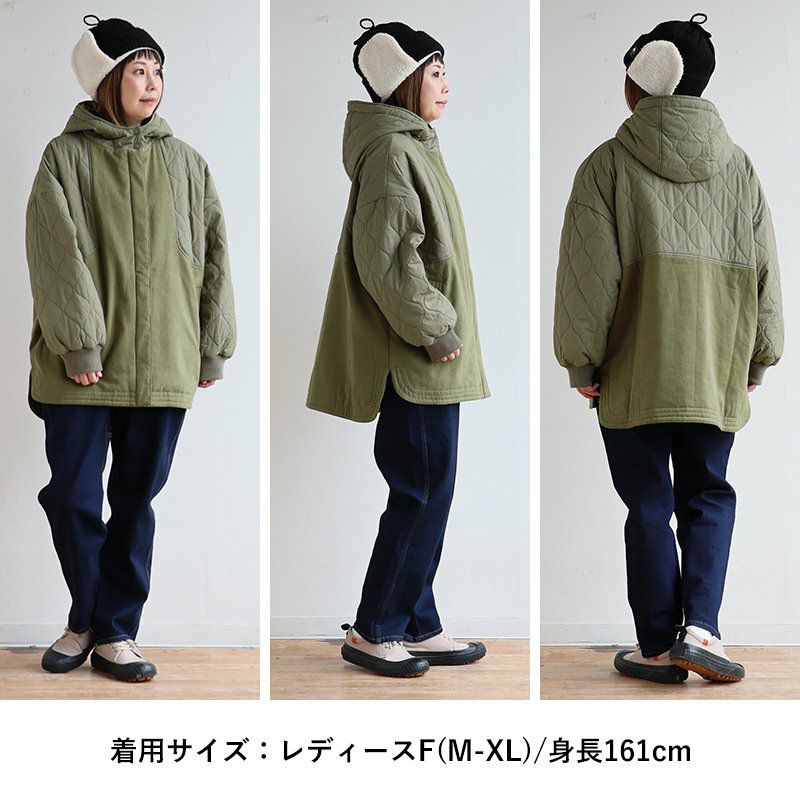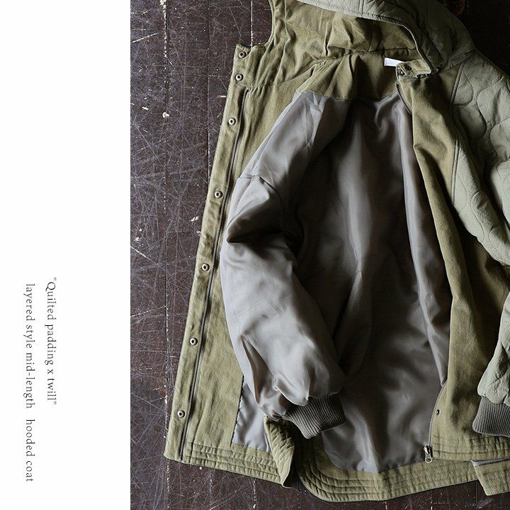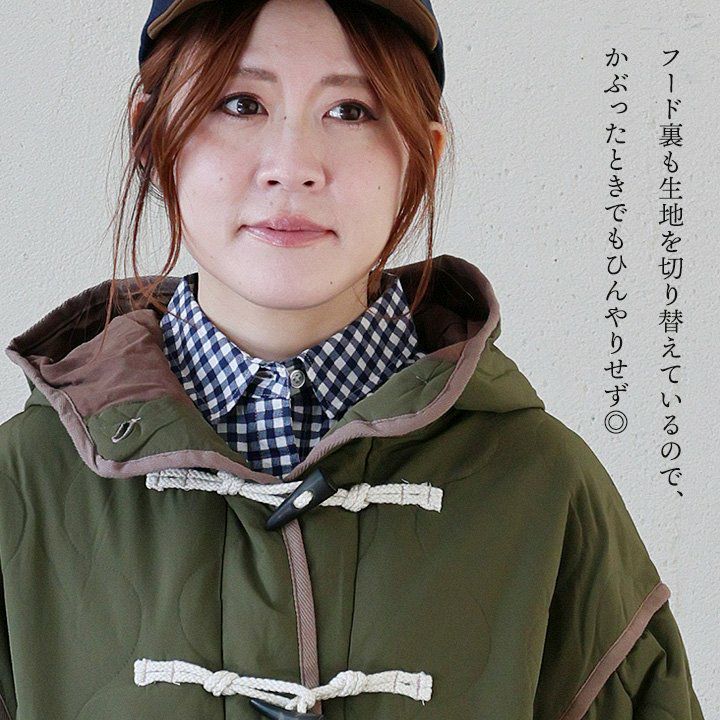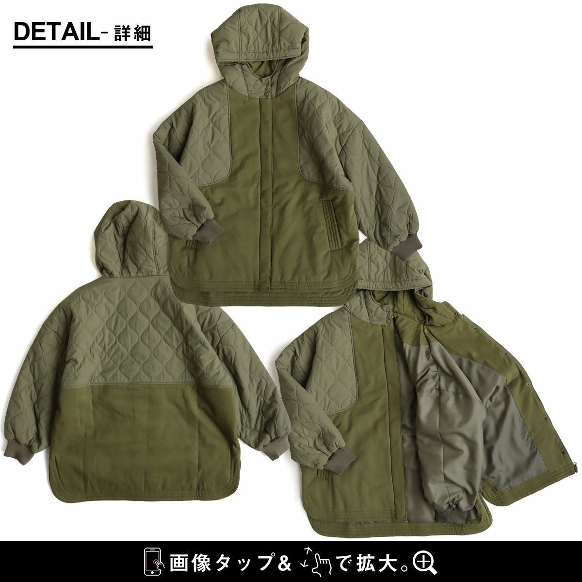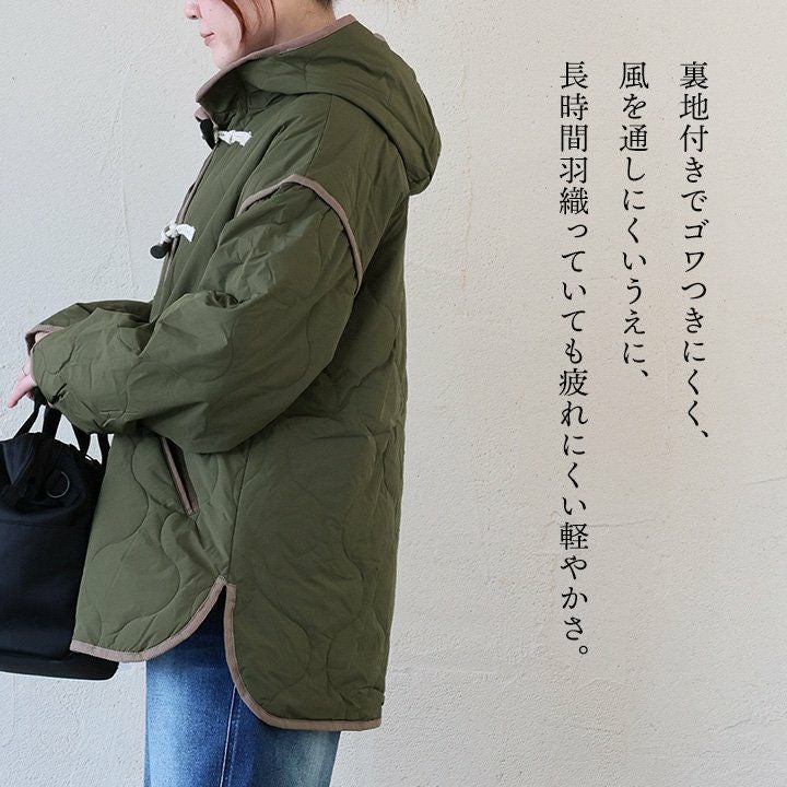 「軽くて暖かい」だけなら、周りと一緒だから。 コート 中綿 レディース フードコート キルティング ツイル 異素材切り替え 重ね着風 ドルマン 軽い 暖かい ゆったり 大きいサイズ 秋 冬 カジュアル パティ