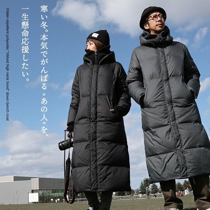 「スポーツ用!」みたいなのは、買いたくなくて。 ベンチコート ダウン ダウンコート 撥水 軽い 防風 暖かい レディース メンズ アウター 冬 リブ ハイネック タートル リブ ダウンジャケット ロングコート 着ぶくれにくい スポーツ観戦 旅行 通勤 通学 大きいサイズ 大きめ パティ ezo& エゾト
