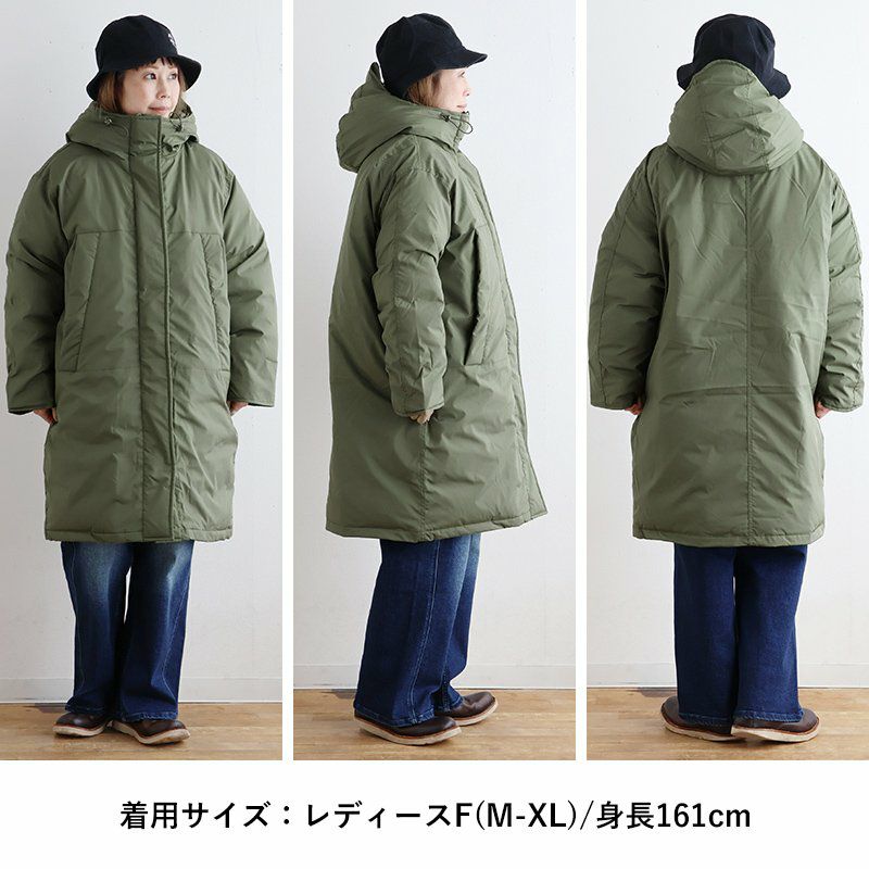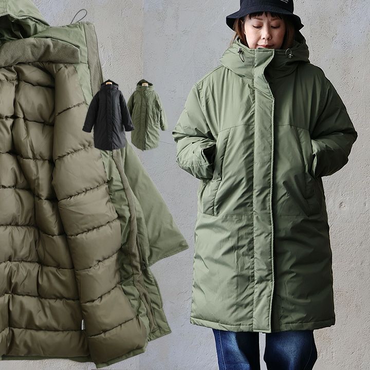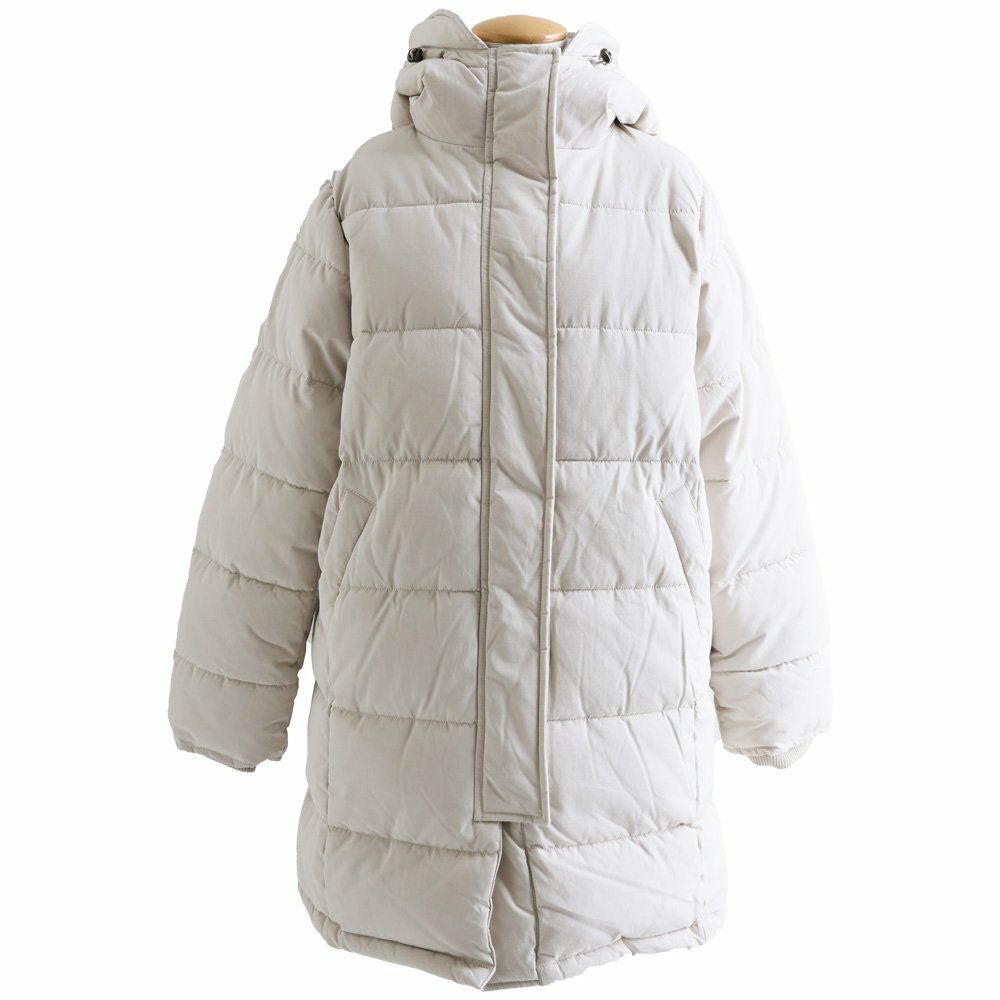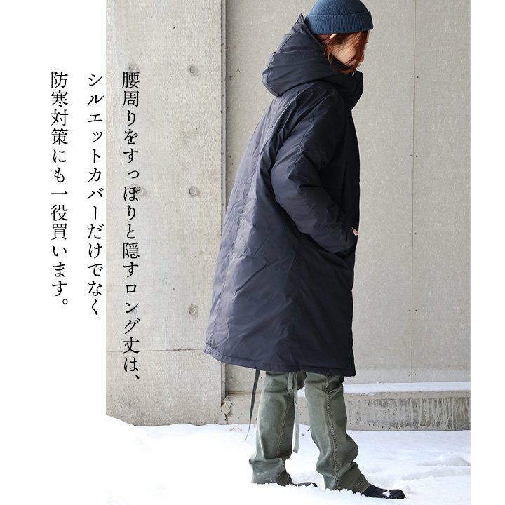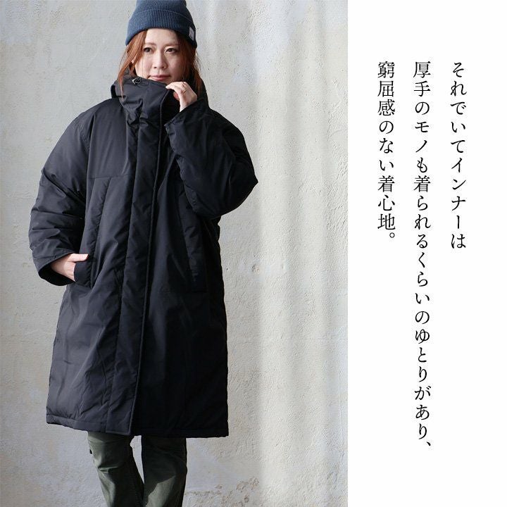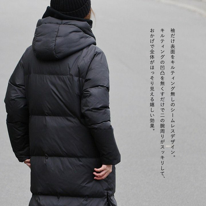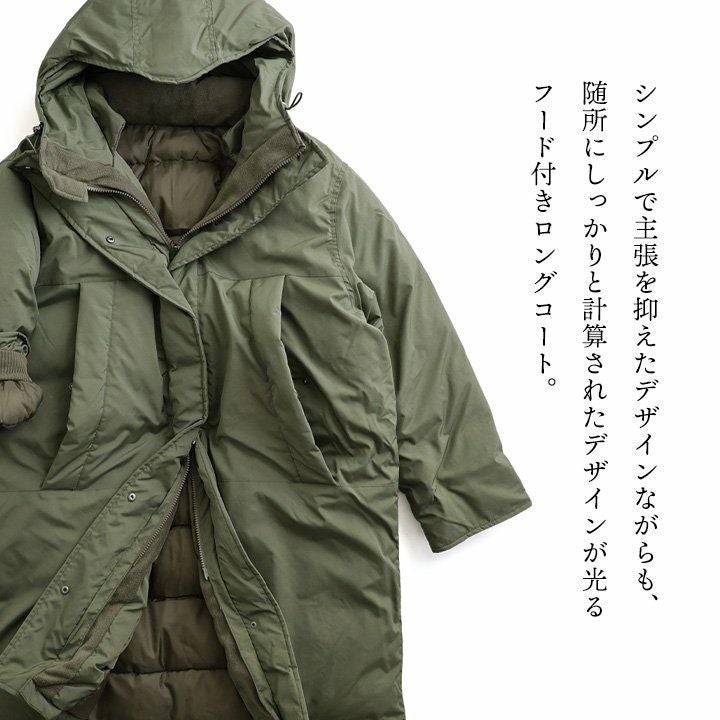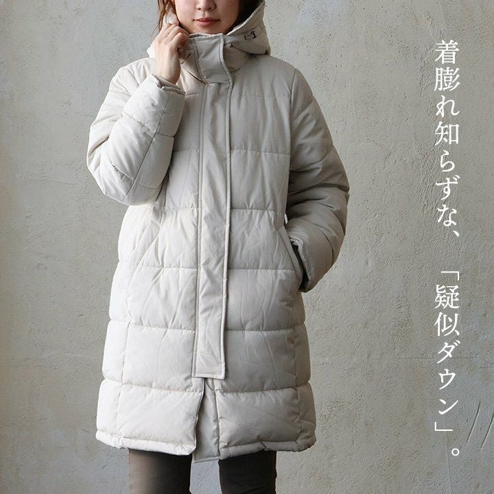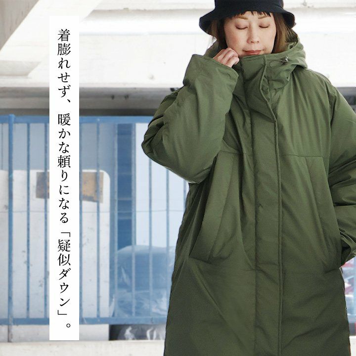 着膨れせず、暖かな頼りになる「疑似ダウン」。 コート ロング丈 レディース スタンドネック フード付き 袖リブ 高機能中綿 暖かい ゆったり 大きいサイズ 体型カバー カジュアル 秋 冬 パティ