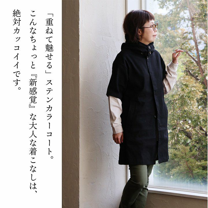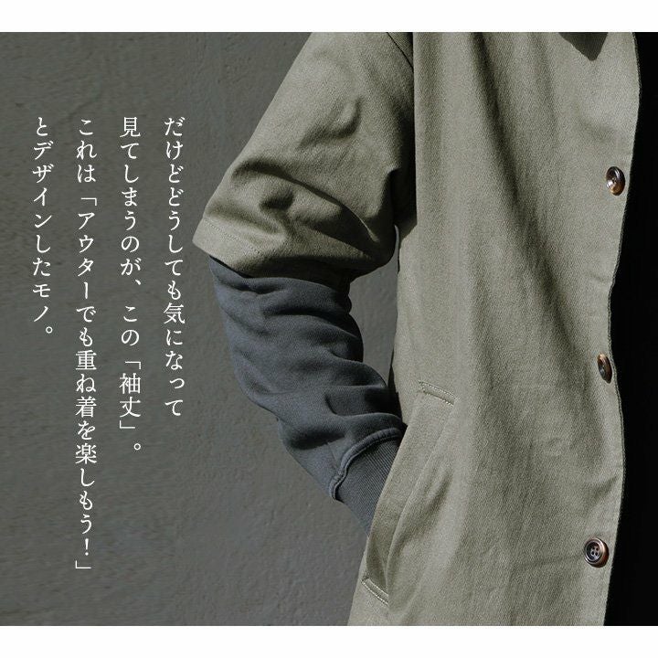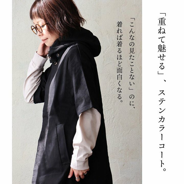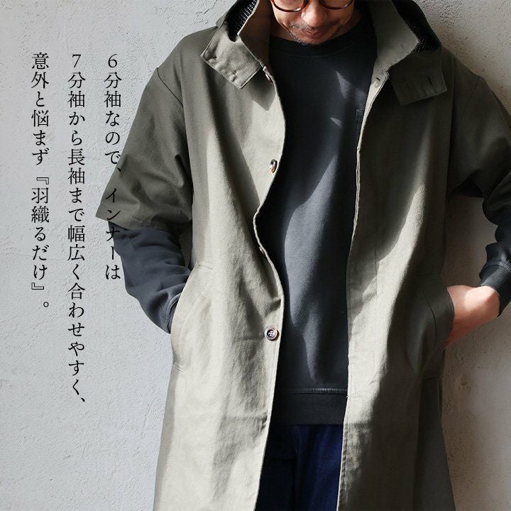 「重ねて魅せる」、ステンカラーコート。 コート ステンカラーコート 6分袖 ミドル丈 メンズ レディース ゆったり 裏地付き 着痩せ しっかり 丈夫 軽い すっきり 体型カバー フード 取外し可 通勤 旅行 大き目 カジュアル パティ SAIL セイル