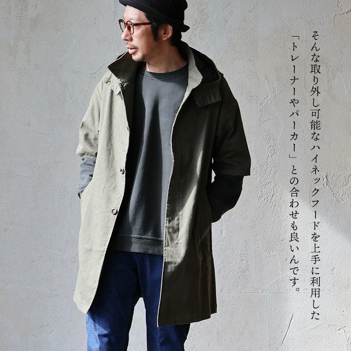 細身シルエットで、着回してもキマる。 コート スリム メンズ レディース ステンカラー 裏地付き ハイネックフード フード 取り外せる 2WAY ストレッチツイル 動きやすい コート ロング丈 センターベント アウター 大人 カジュアル ユニセックス 無地 着痩せ シンプル 無地 PATY パティ