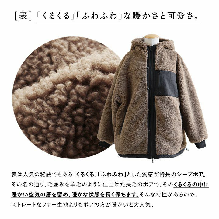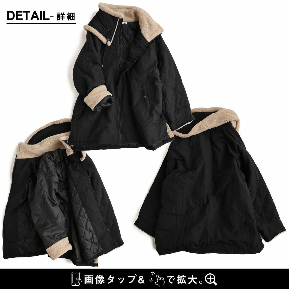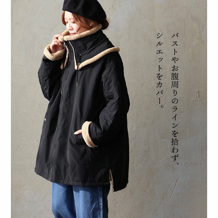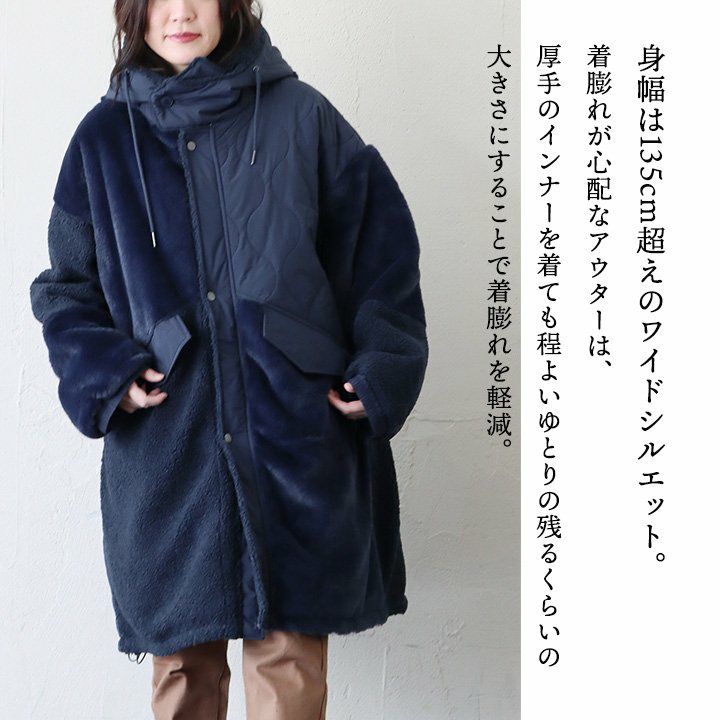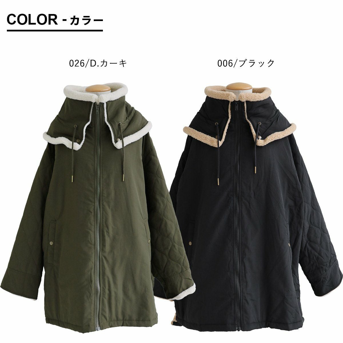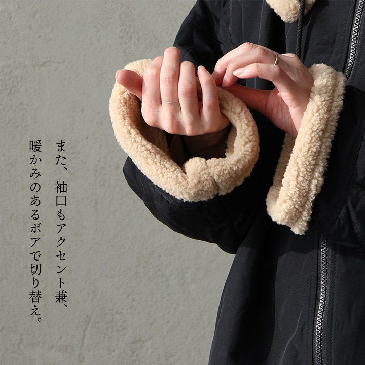 王道アウターは、「生地の違い」で差をつけ、楽しみたい。 アウター 着痩せ ボア コート レディース 暖かい 防寒 防風 冬 ミドル丈 お尻 隠れ カバー すっきり 体型カバー しっかり 丈夫 裏地 フード リブ 配色 切り替え ハイネック カジュアル パティ SAIL セイル