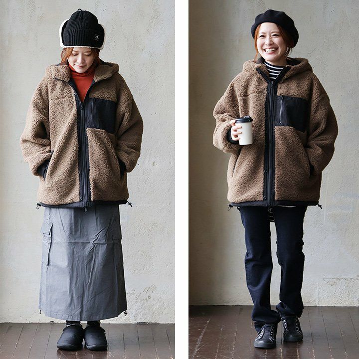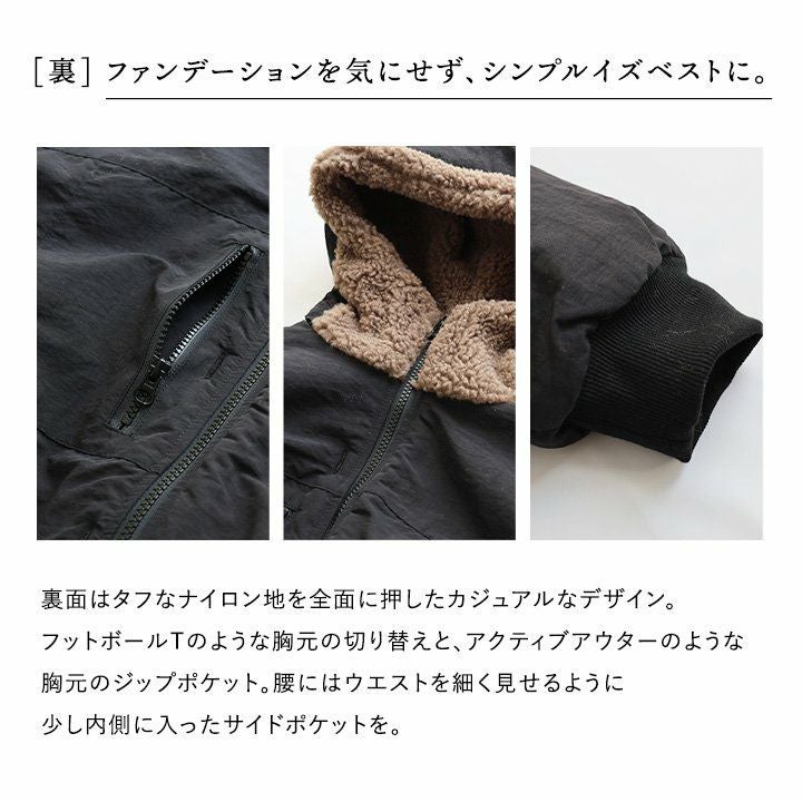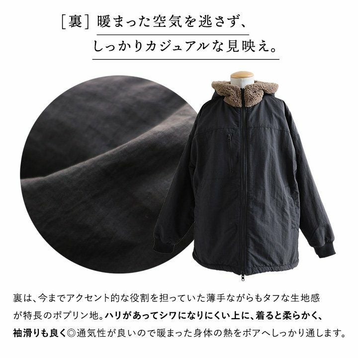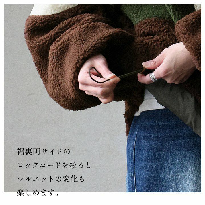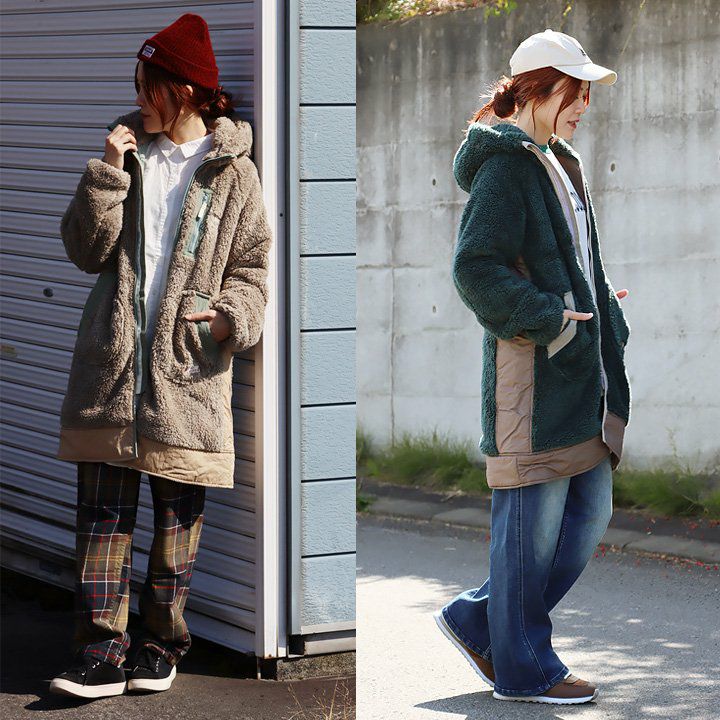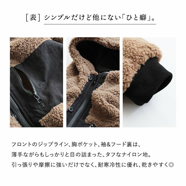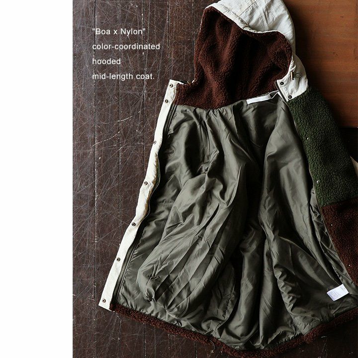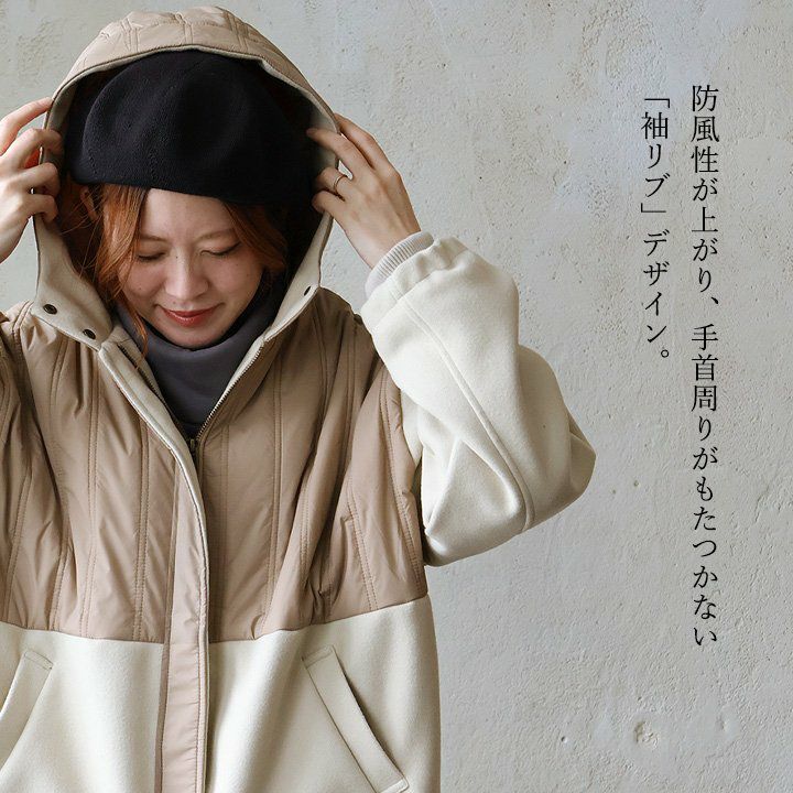 王道アウターは、「生地の違い」で差をつけ、楽しみたい。 アウター 着痩せ ボア コート レディース 暖かい 防寒 防風 冬 ミドル丈 お尻 隠れ カバー すっきり 体型カバー しっかり 丈夫 裏地 フード リブ 配色 切り替え ハイネック カジュアル パティ SAIL セイル