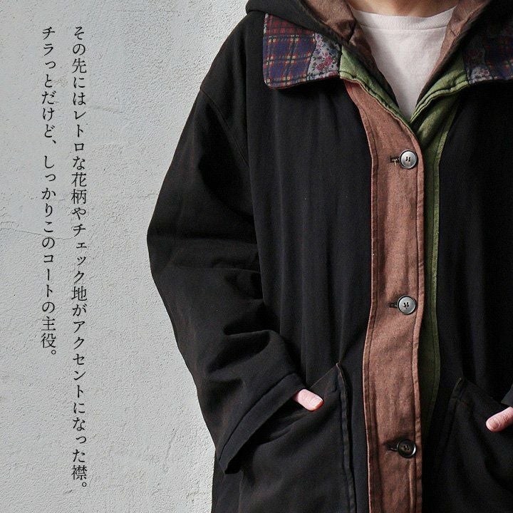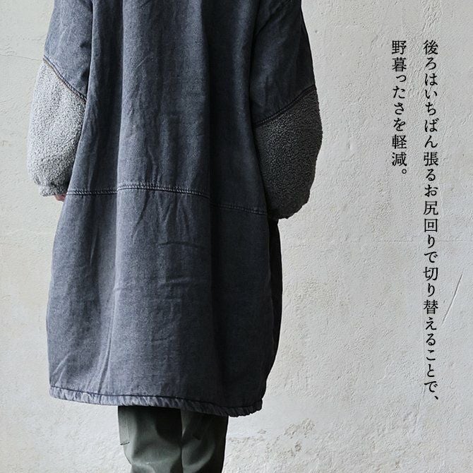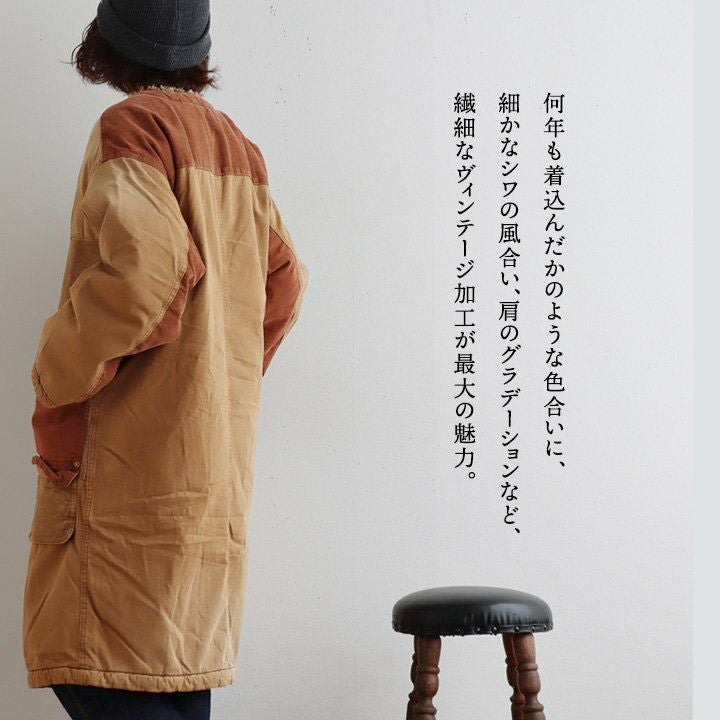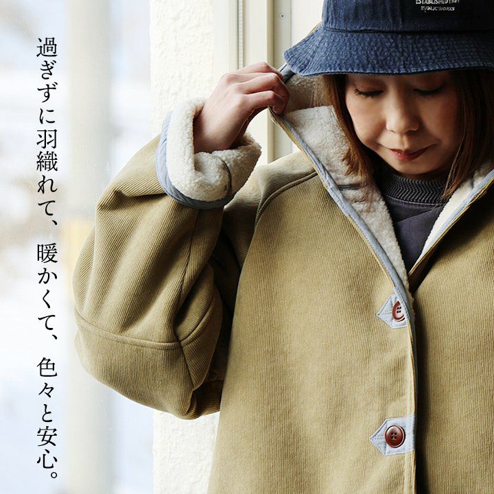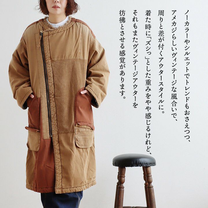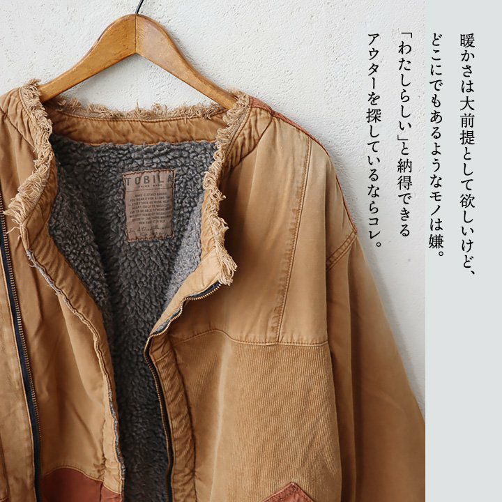 「わたしらしい」、トレンドとヴィンテージの絶妙バランス。 コート ノーカラー ノーカラーコート レディース 裏ボア ツイル コーデュロイ パッチワーク リメイク 異素材 切り替え ヴィンテージ ボアコート 暖かい おしゃれ カジュアル アメカジ 秋 冬 パティ TOBILA トビラ