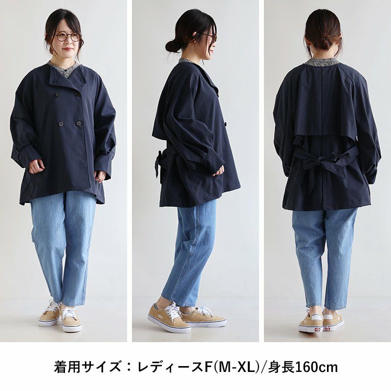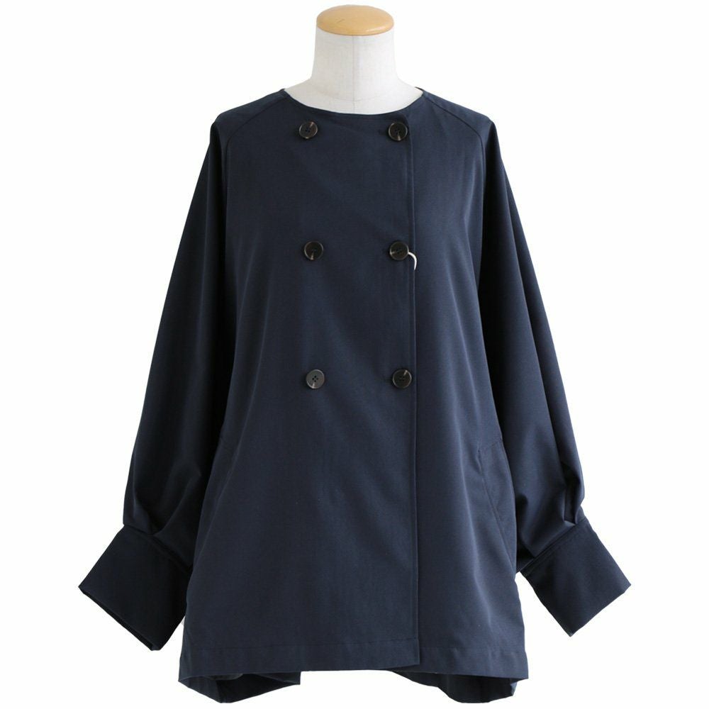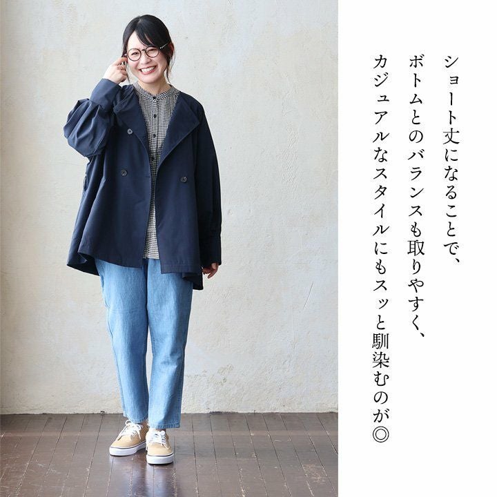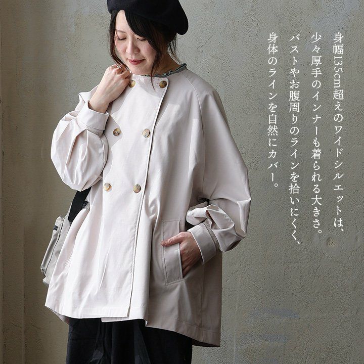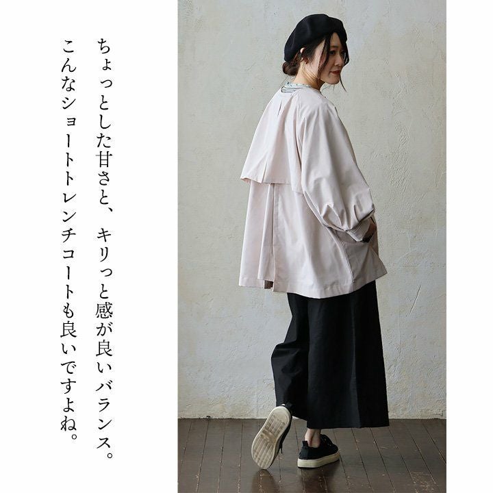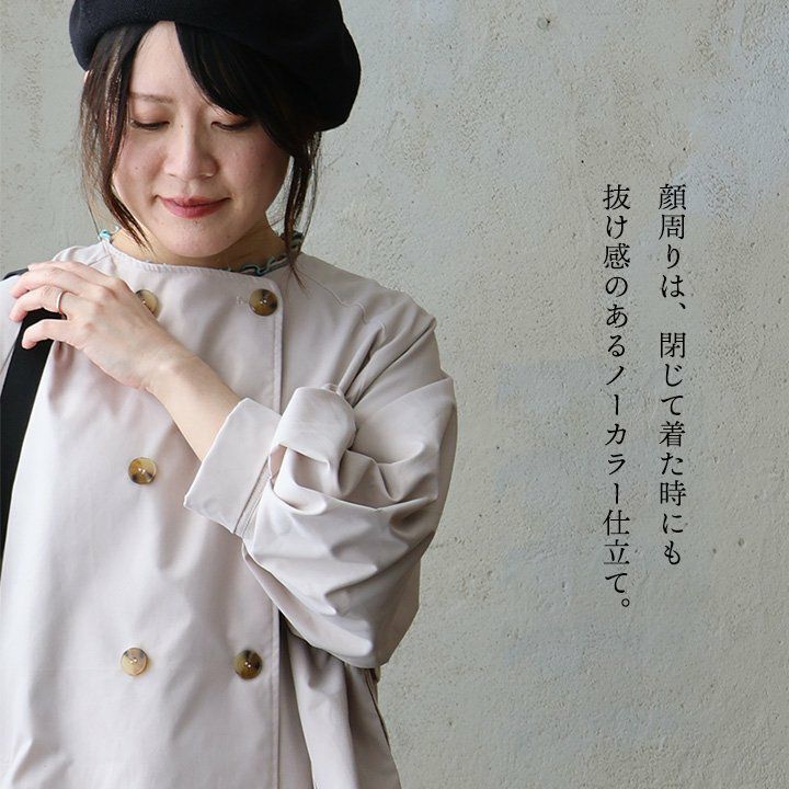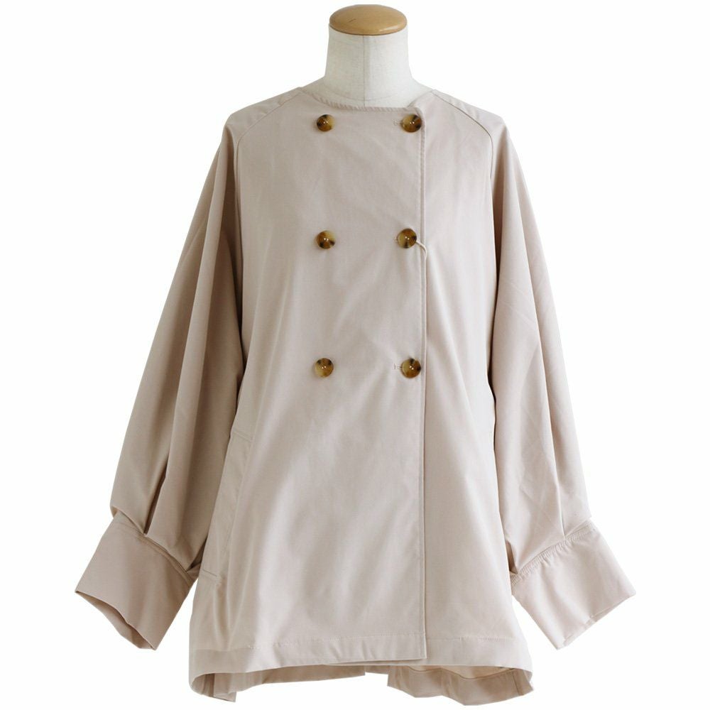 ちょっとした「甘さ」と「キリっと感」が良い。 コート ショート トレンチコート ショート丈 レディース ノーカラー ポリエステル 無地 裏地付き 袖バルーン 大きいサイズ 体型カバー カジュアル パティ en haut アンオー