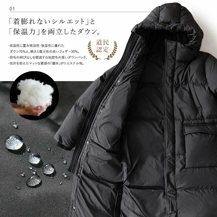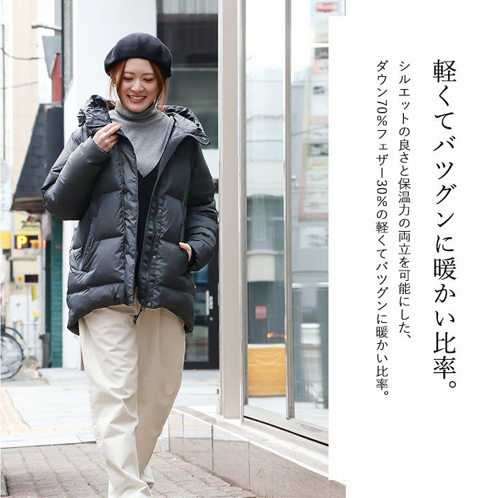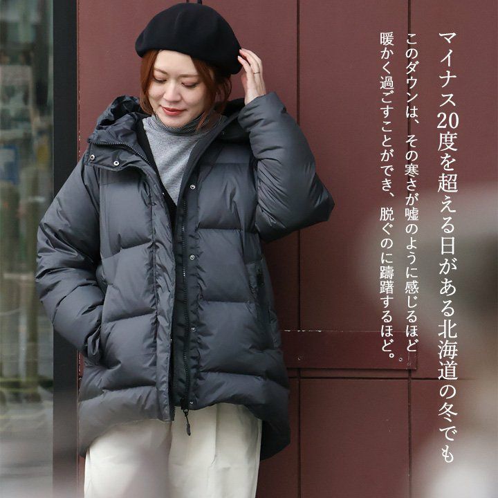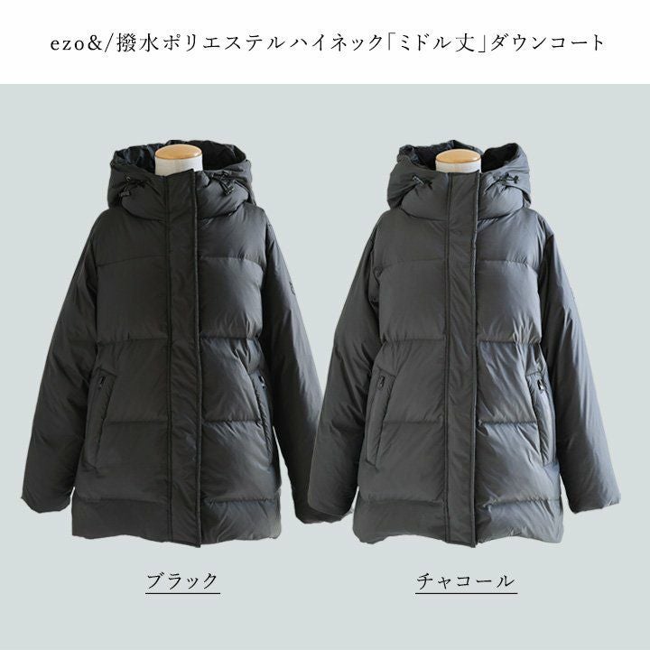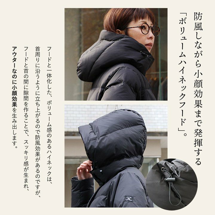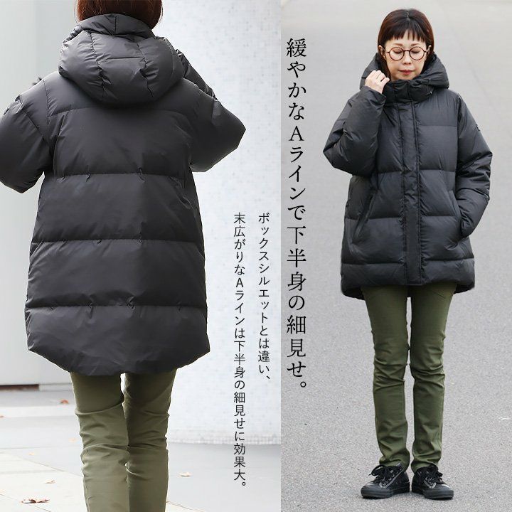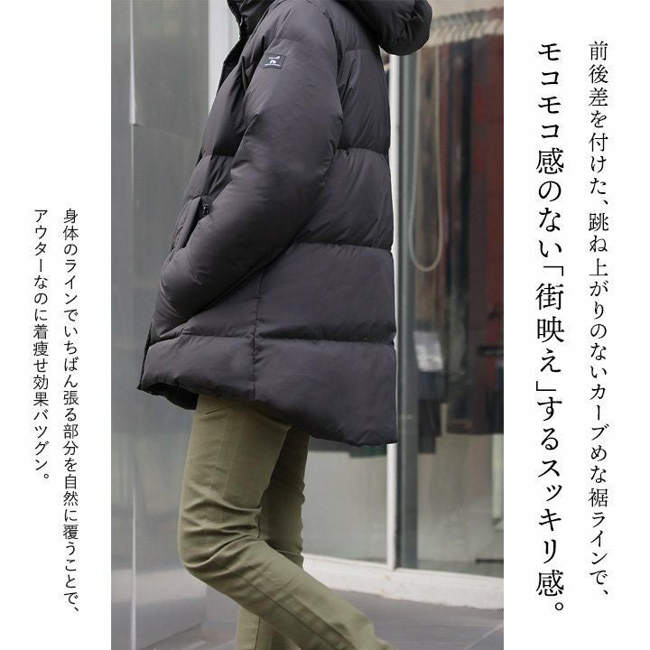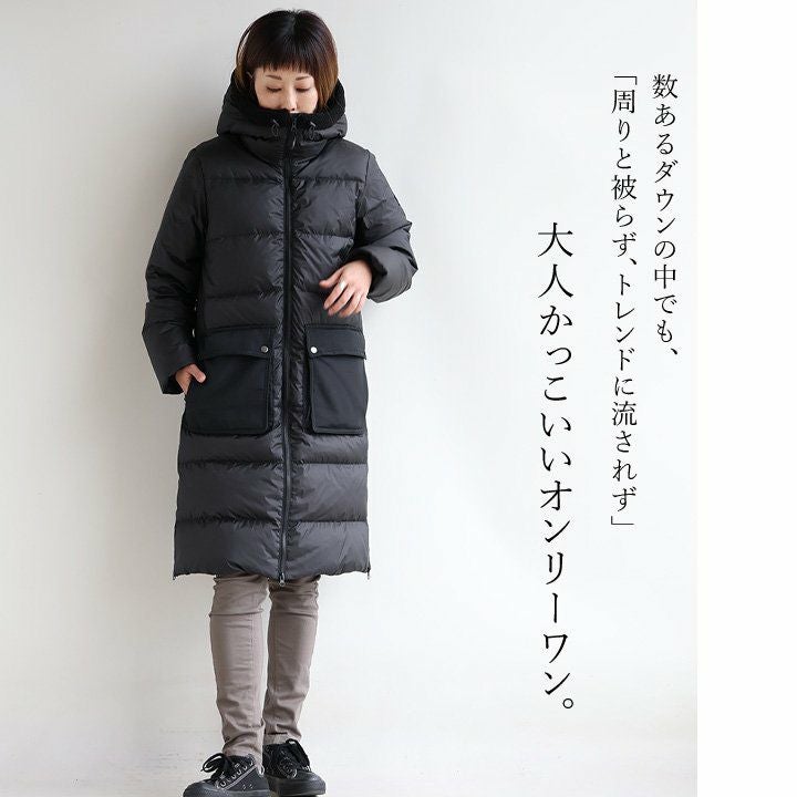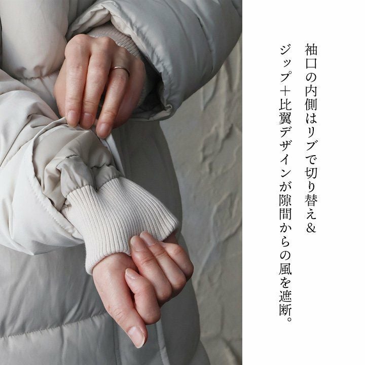 包み込まれるような着心地の「着痩せ」ダウン。 ダウンコート レディース ダウン ミドル丈 撥水 軽い 防風 暖かい 着痩せ アウター 冬 リブ ハイネック リブ ダウンジャケット ロングコート 着ぶくれにくい ジップポケット スポーツ観戦 旅行 通勤 通学 身幅大き目 パティ ezo& エゾト