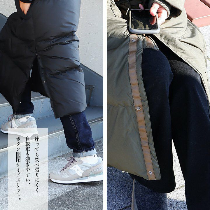 「スポーツ用!」みたいなのは、買いたくなくて。 ベンチコート ダウン ダウンコート 軽量 撥水 防風 暖かい レディース メンズ アウター ダウンジャケット ロングコート ハイネック 袖 リブ 着ぶくれにくい スポーツ観戦 旅行 通勤 通学 大きいサイズ 大きめ おしゃれ パティ EZOTO