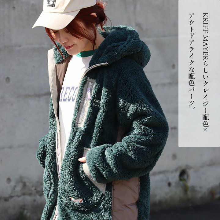 軽い!暖かい!気持ちいい!冬場の外歩きも「ぬくぬく」です。 KRIFF MAYER クリフメイヤー 暖かい ボア ジャケット レディース すっきり 着痩せ 軽い シャギーボア ロング コート 裏地ストレッチメッシュ クレイジー 配色 切り替え コート 女性用 秋 冬 アウター 防寒 カジュアル パティ 限定コラボ