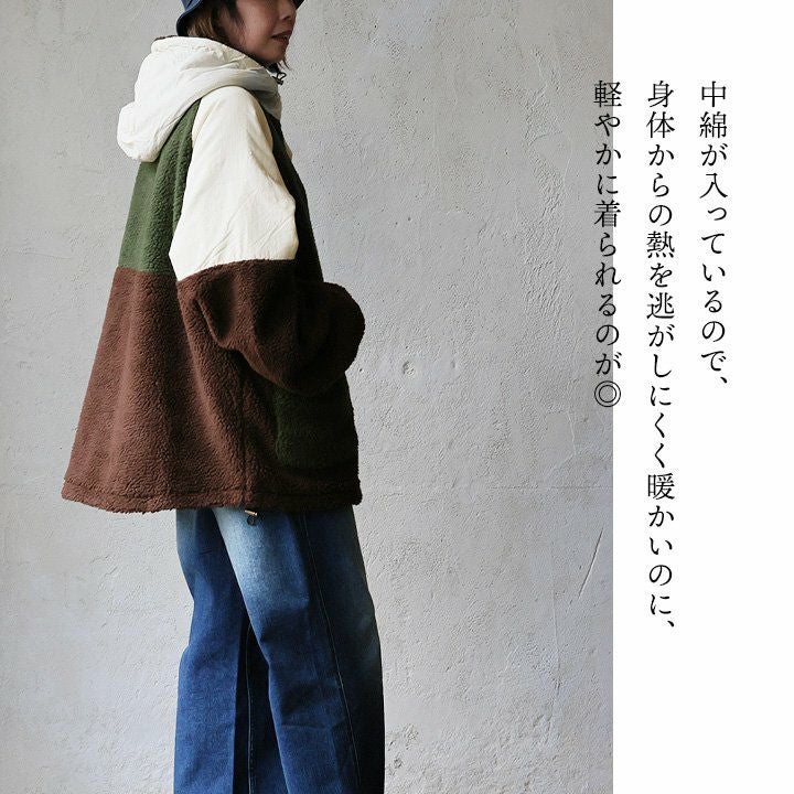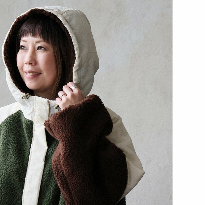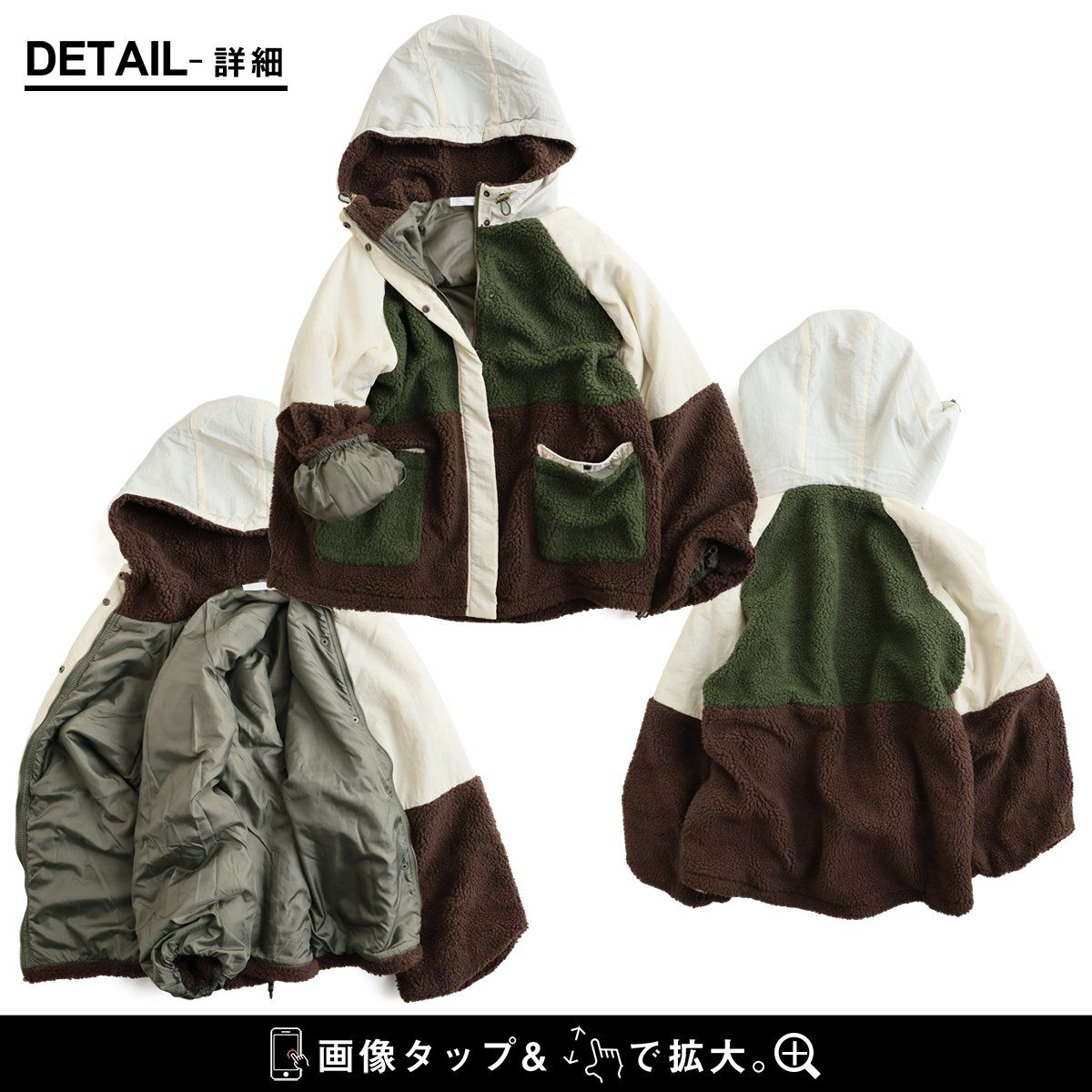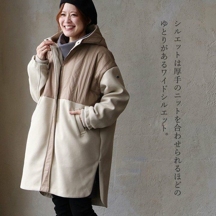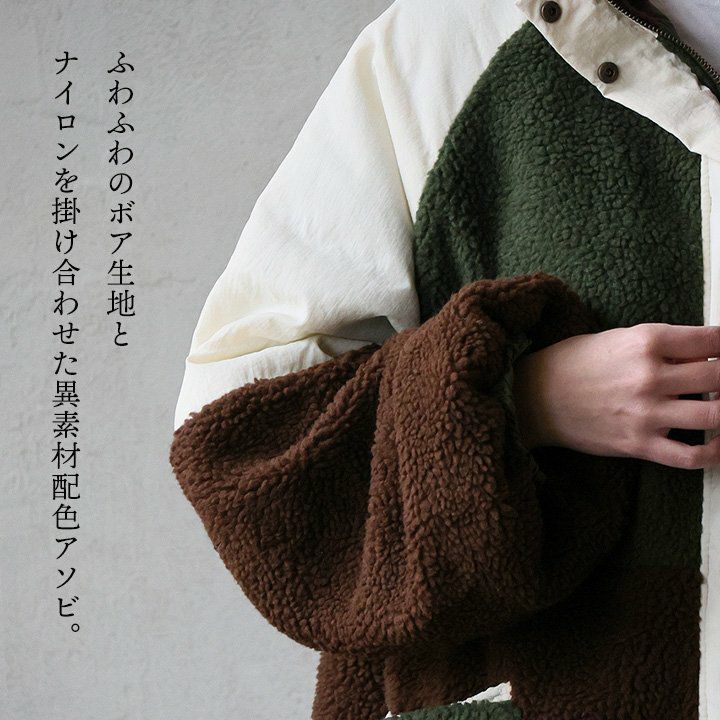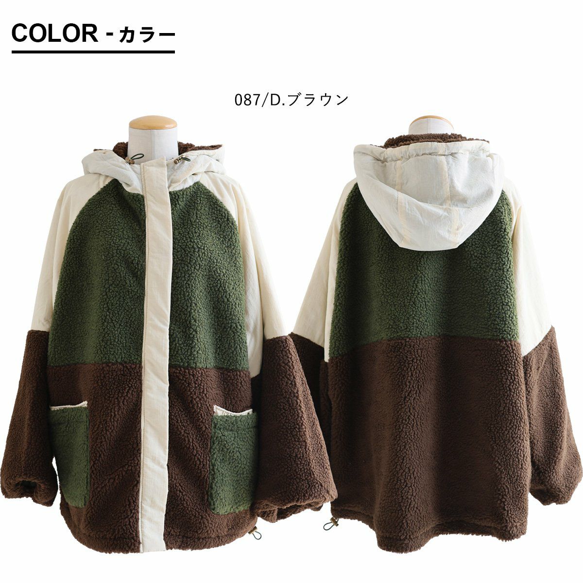 「暖軽く」配色と素材で“違い”を楽しむ。 コート ボアコート レディース ミドル丈 配色 ボア ポリエステル ナイロン 異素材切り替え 裏地付き 軽い 暖かい ゆったり 大きいサイズ 体型カバー カジュアル 秋 冬 パティ