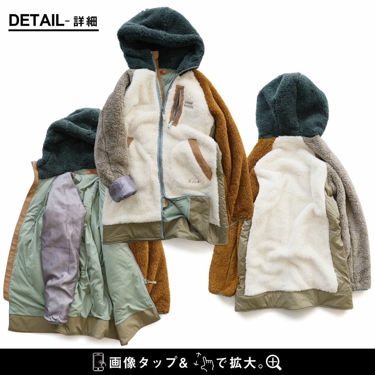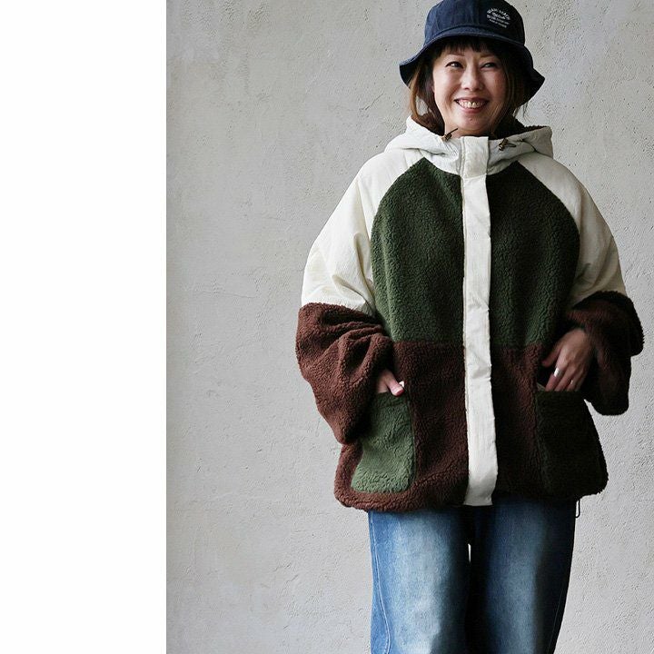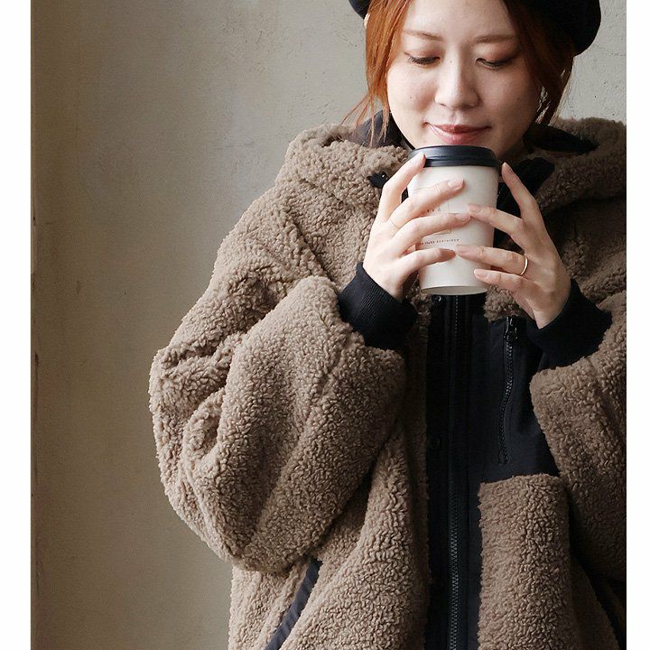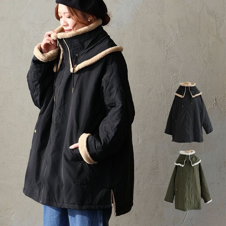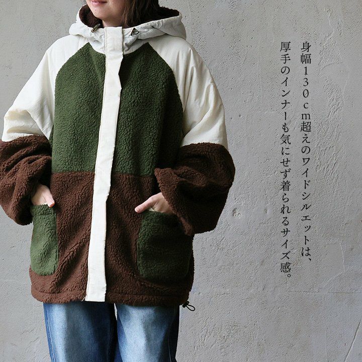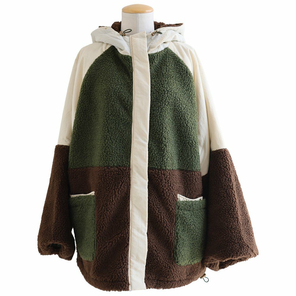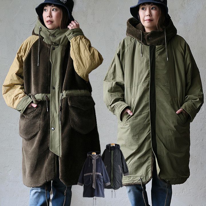 「暖軽く」配色と素材で“違い”を楽しむ。 コート ボアコート レディース ミドル丈 配色 ボア ポリエステル ナイロン 異素材切り替え 裏地付き 軽い 暖かい ゆったり 大きいサイズ 体型カバー カジュアル 秋 冬 パティ