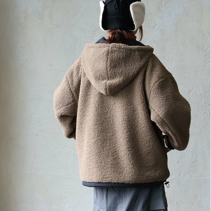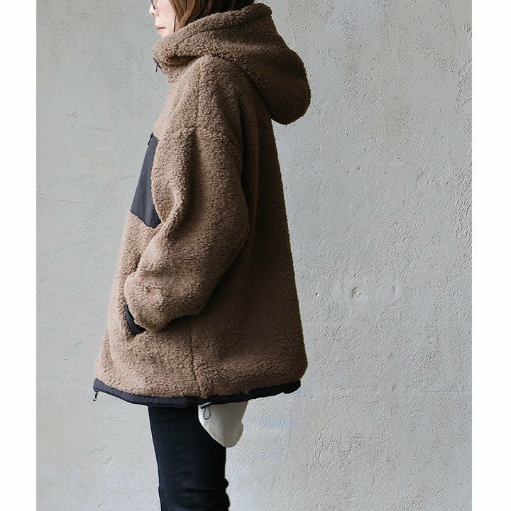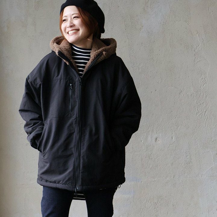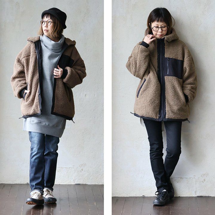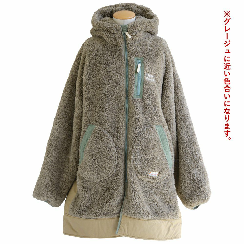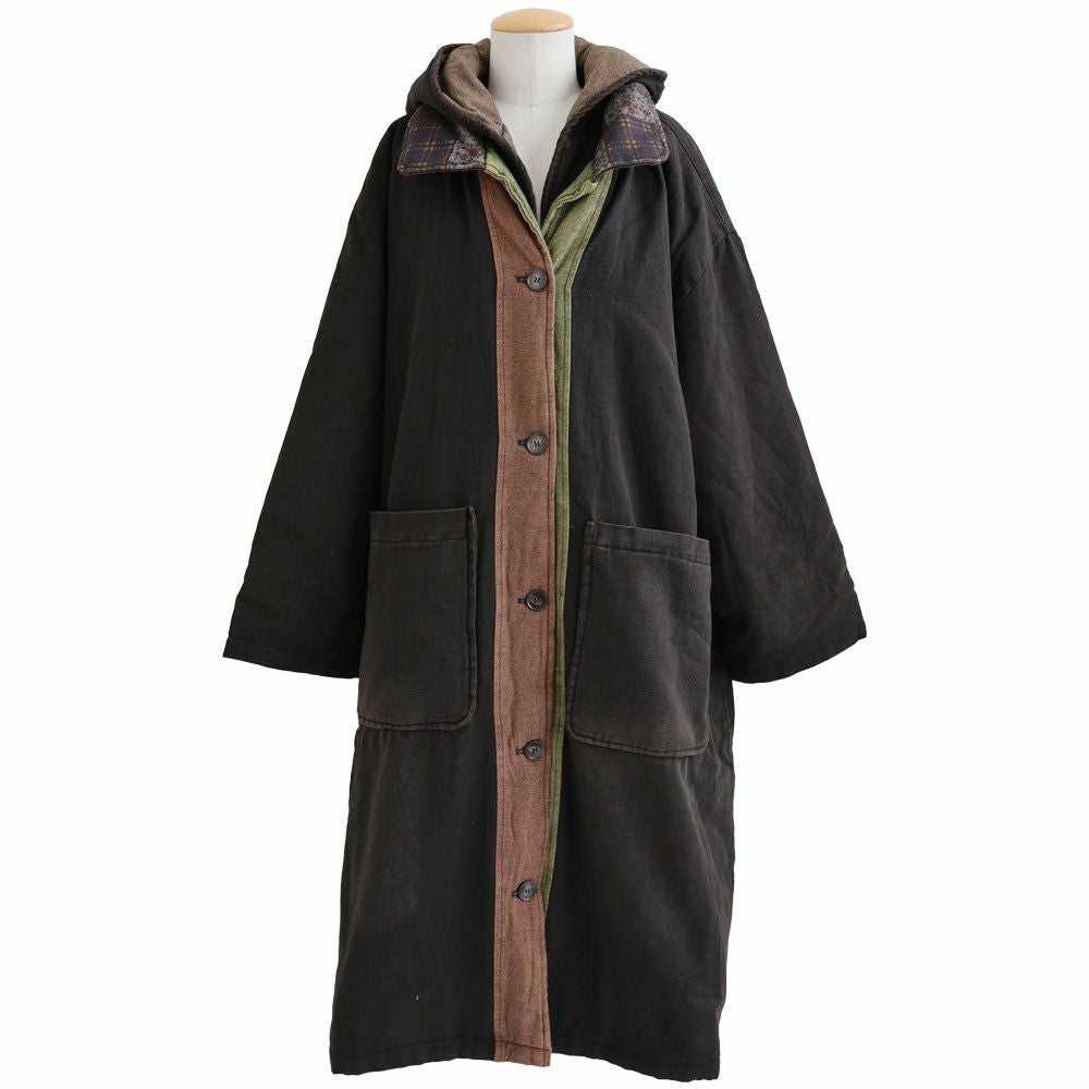 チグハグが面白くて、暖かくて、そのうえひっくり返しても楽しめちゃう。 コート ロングコート レディース 長袖 フード付き リバーシブル フェイクファー ボア 中綿 ポリエステル ナイロン異素材切り替え 暖かい 体型カバー 大きいサイズ ゆったり カジュアル 秋 冬 パティ GENTIL ジャンティ