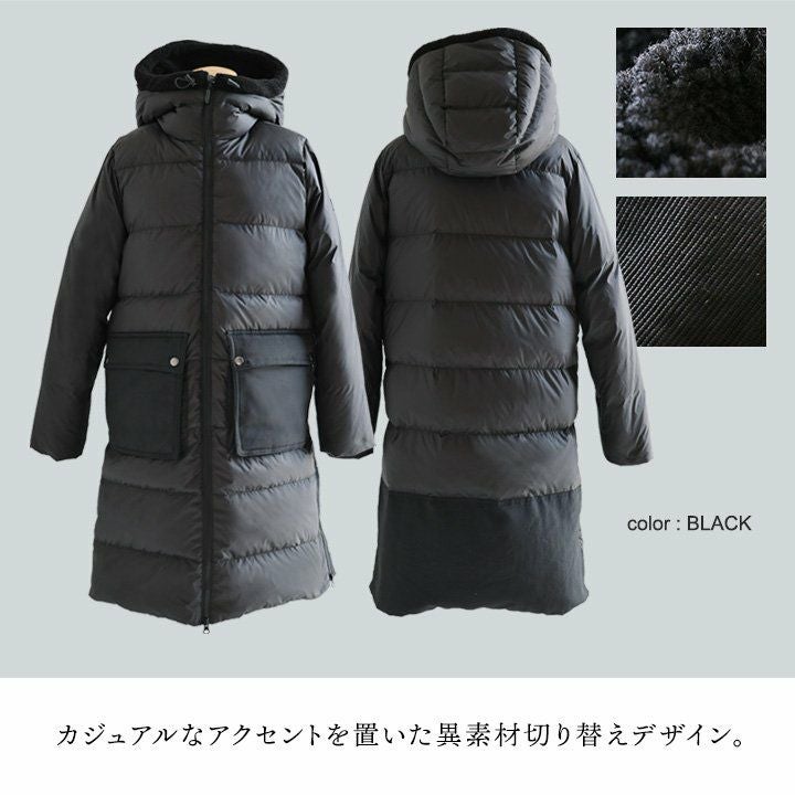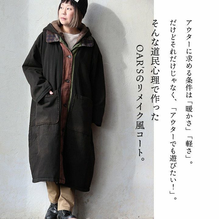 寒さに強く、周りと被らない「オンリーワン」。 コート レディース 配色 異素材 切り替え フード ドッキング ポケット 中綿 ロングコート 冬 アウター ギフト 着痩せ 大きいサイズ パティ OAR’S オールズ