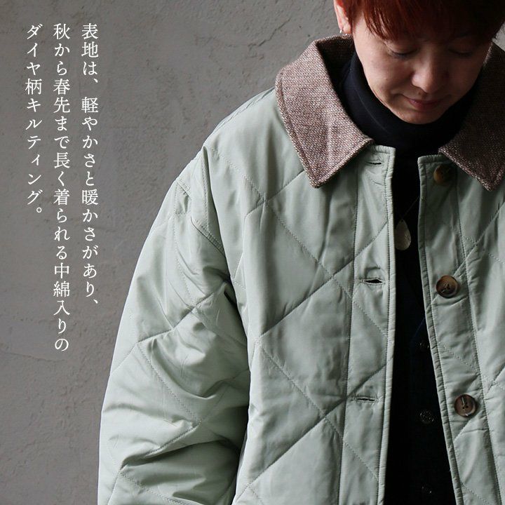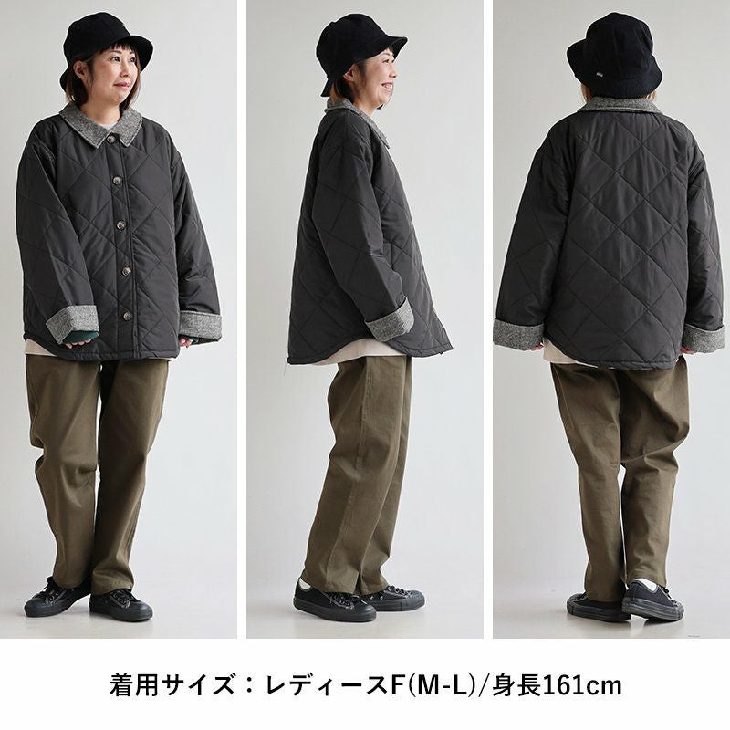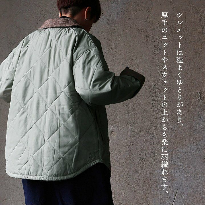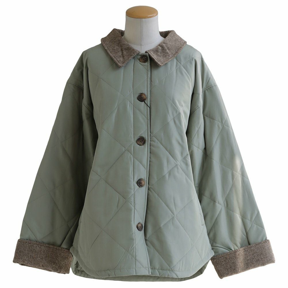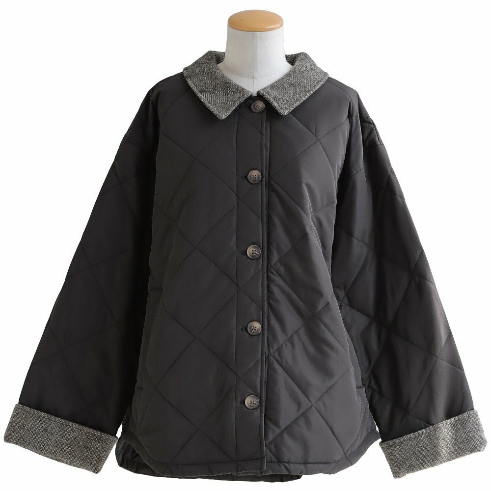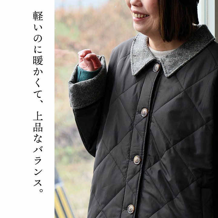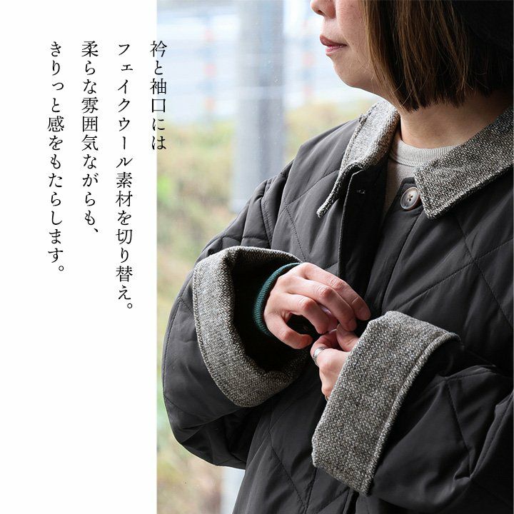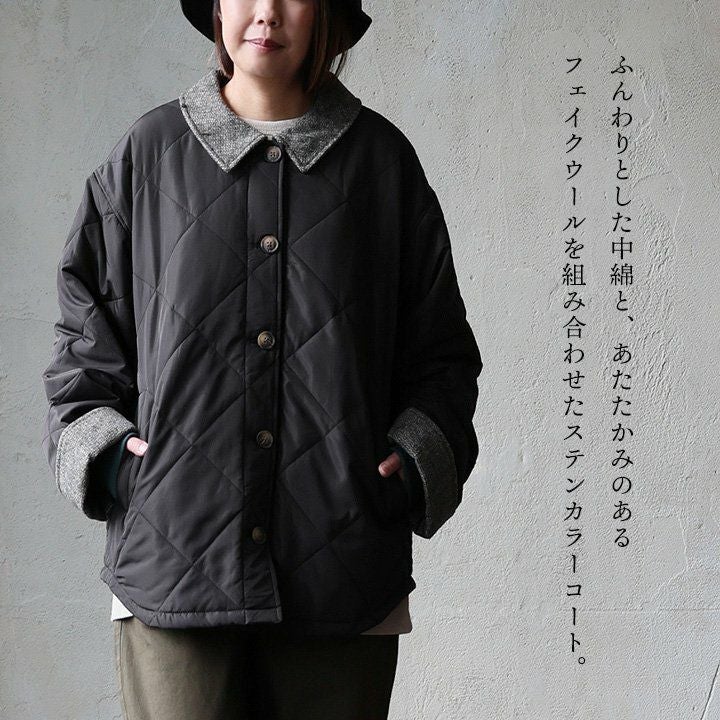軽いのに暖かくて、上品なバランス。 ステンカラーコート レディース ポリエステル ダイヤ柄 キルティング 中綿 軽い 暖かい 異素材切り替え フェイク ウール ゆったり 大きいサイズ 体型カバー カジュアル 秋 冬 パティ le colis ルコリ